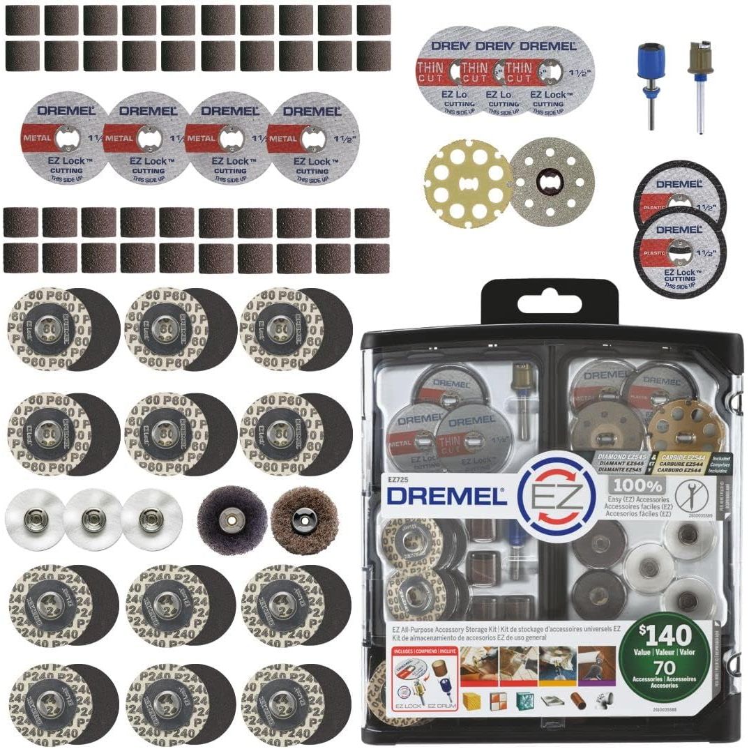 - Dremel 709-02 110-Piece All-Purpose Rotary Tool Accessory Kit- Includes a Carving Bit, Sanding Drums, Grinding Stones, Cutting Discs, and a Storage Case, Gray