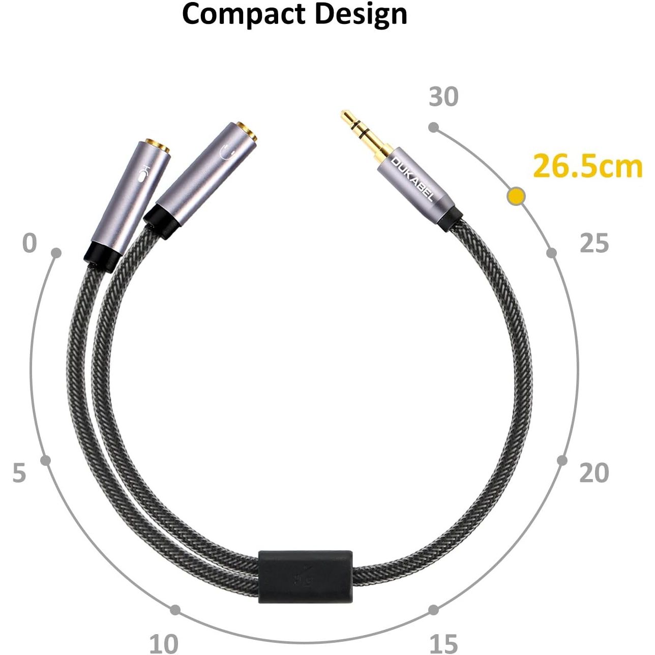 DUKABEL Headsets Splitter Adapter, 3.5mm Jack Separate Headphone & Mic Plug Adapter 3.5mm Combo Audio Adapter Cable for PS4 Gaming Headset PC Xbox One Laptop -<11inch/30CM>