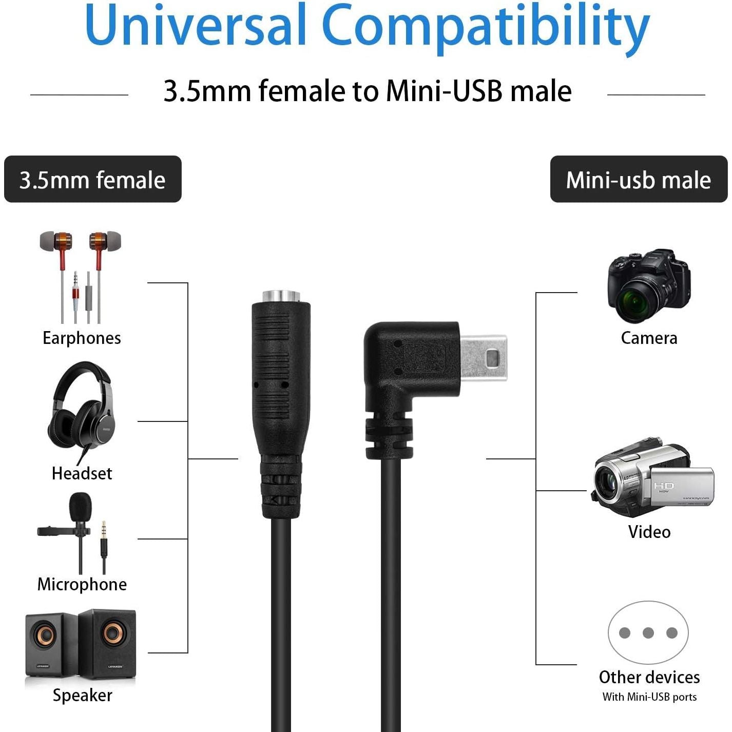 - Duttek Mini USB to 3.5mm Cable, Right Angled Mini USB Male to 4 Pole 3.5mm Female Cable Cord for Active Clip Mic Microphone Adapter Cable-15cm/5.9 in