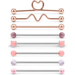- VALUE PACK: One Order Including 8 Pieces 16 Gauge Industrial Barbell Body Piercing Jewelry (Glow in the Dark Ball/Classic Shiny Ball/Glitter Ball/Created-Pearl/Matte Ball/Heart/Wavy), Mix Styles Piercing Kit Give You Changeful Outfit.