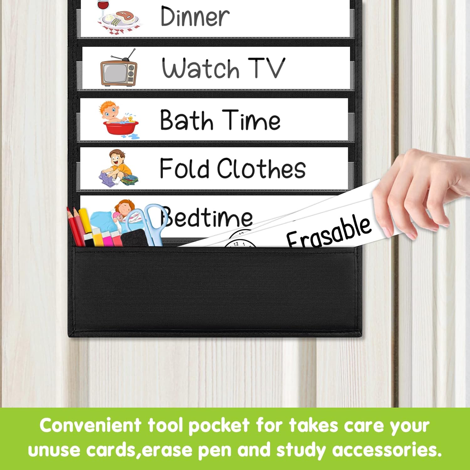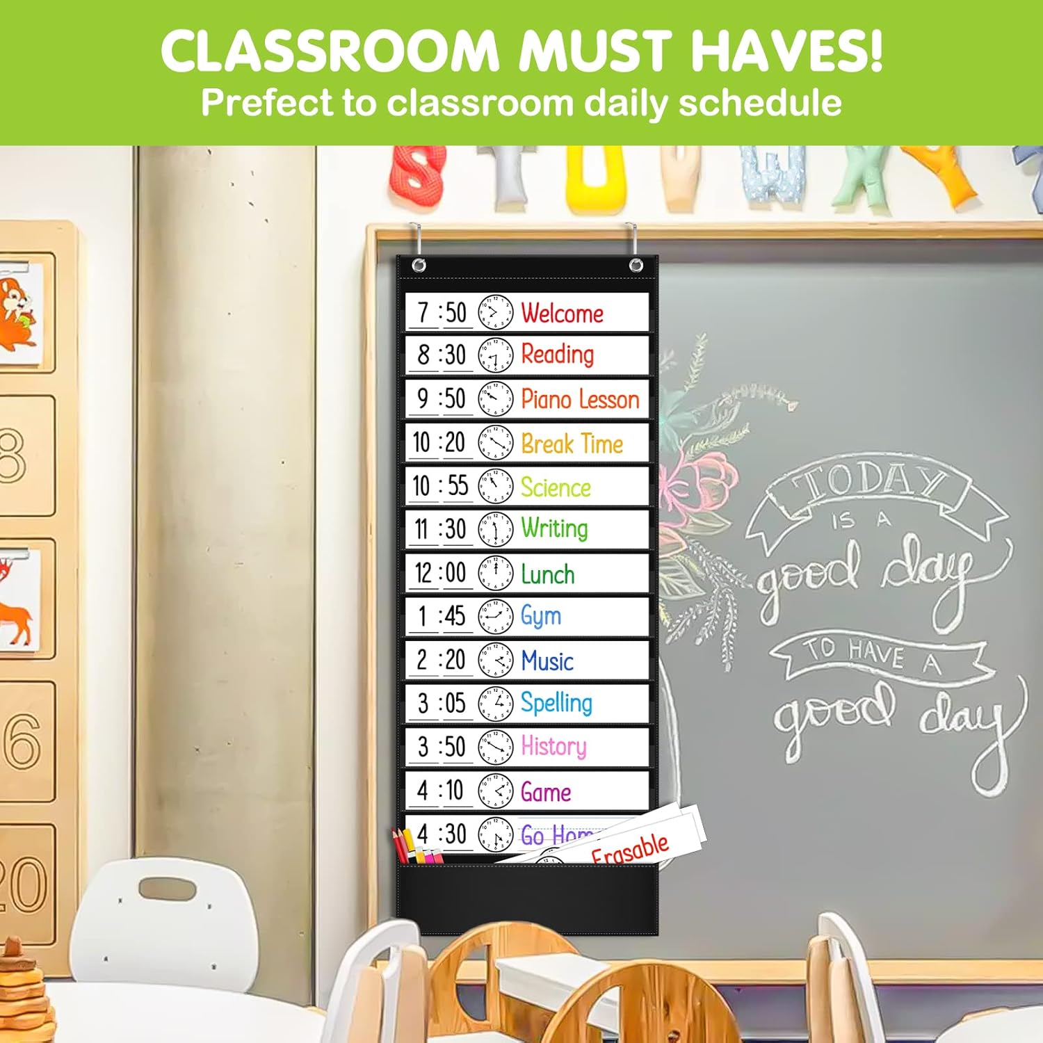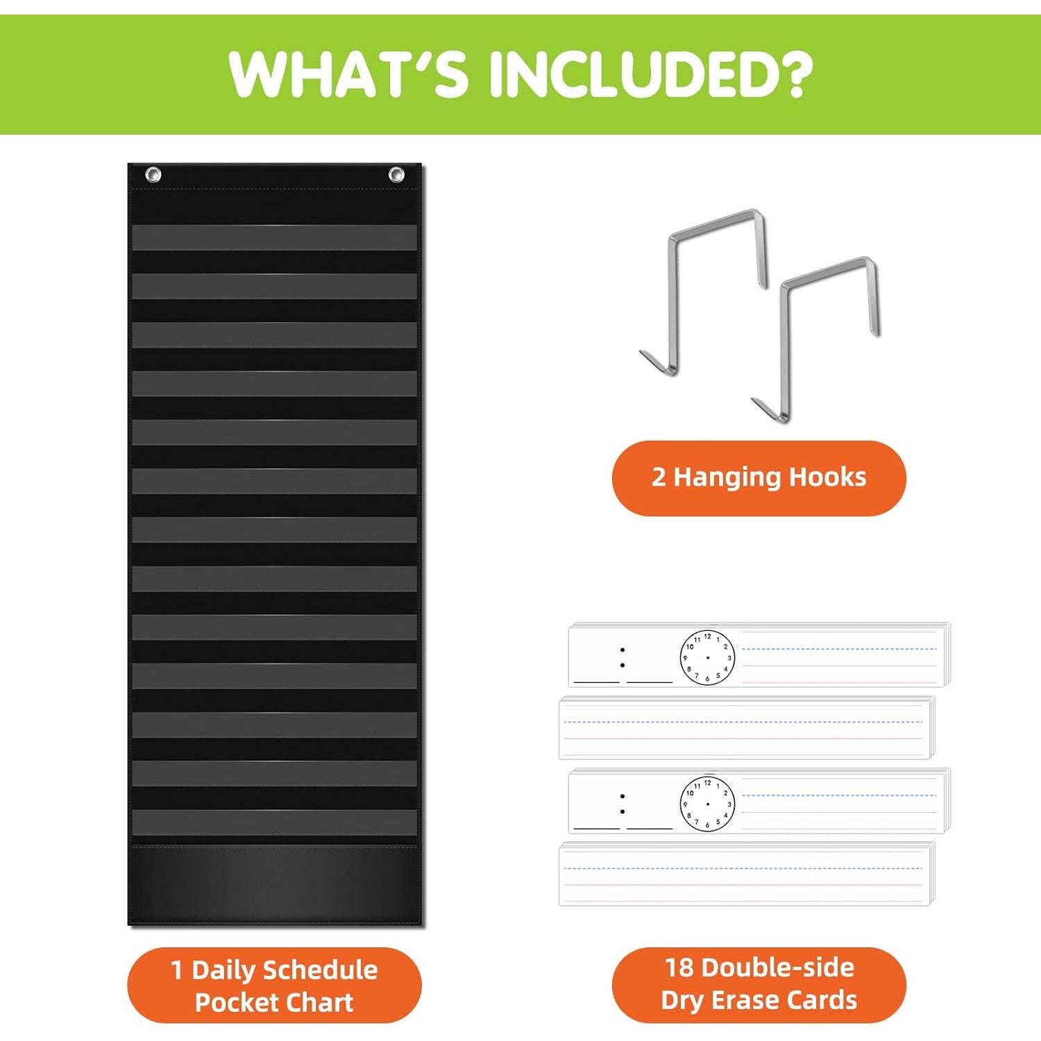- EAMAY Daily Schedule Pocket Charts, Teacher Schedule Chart with Resuable 18 Custom Cards, Classroom Pocket Chart for School Office or Homeschool Activities, Black