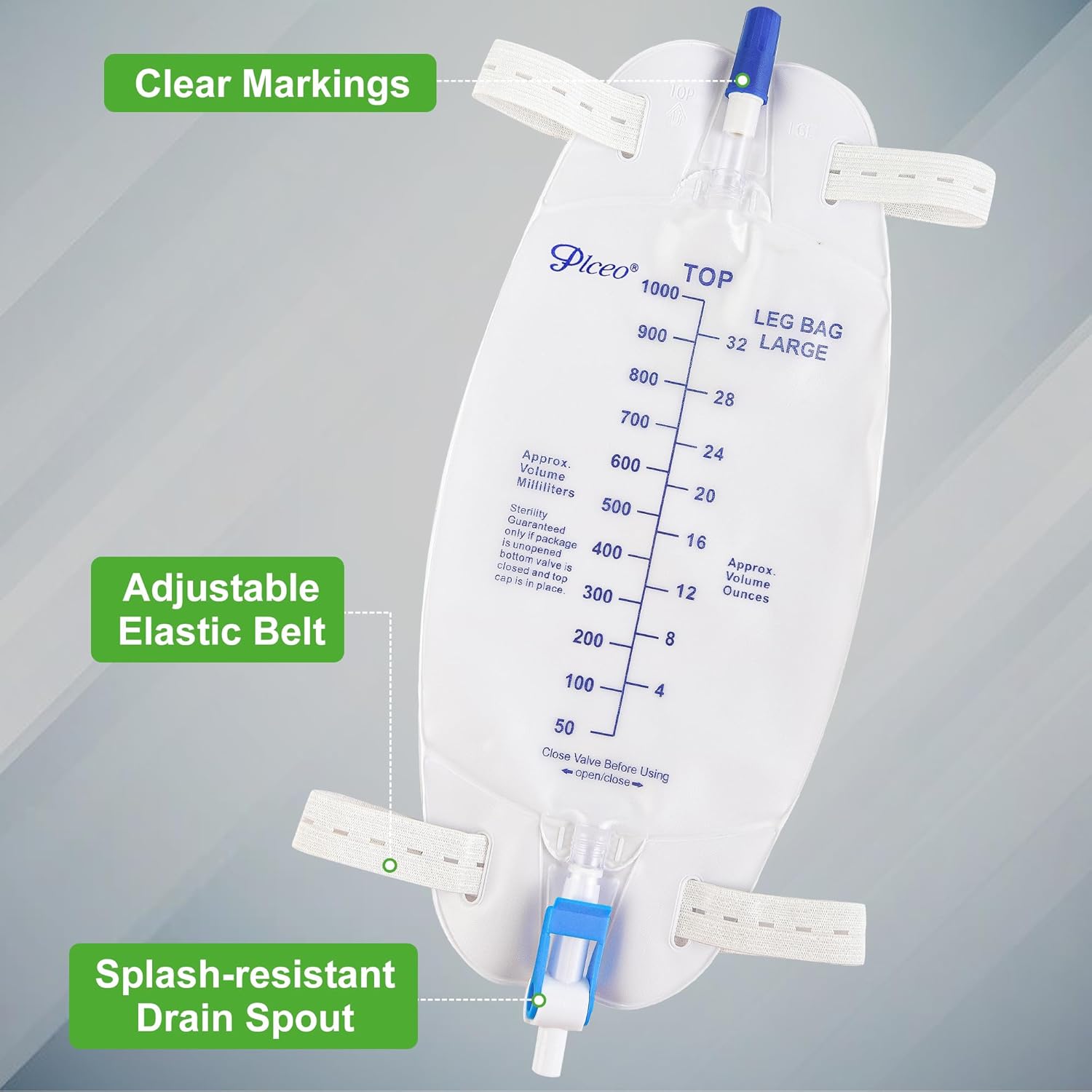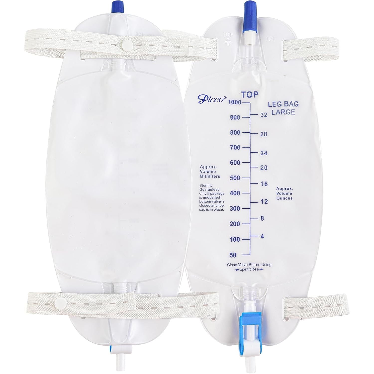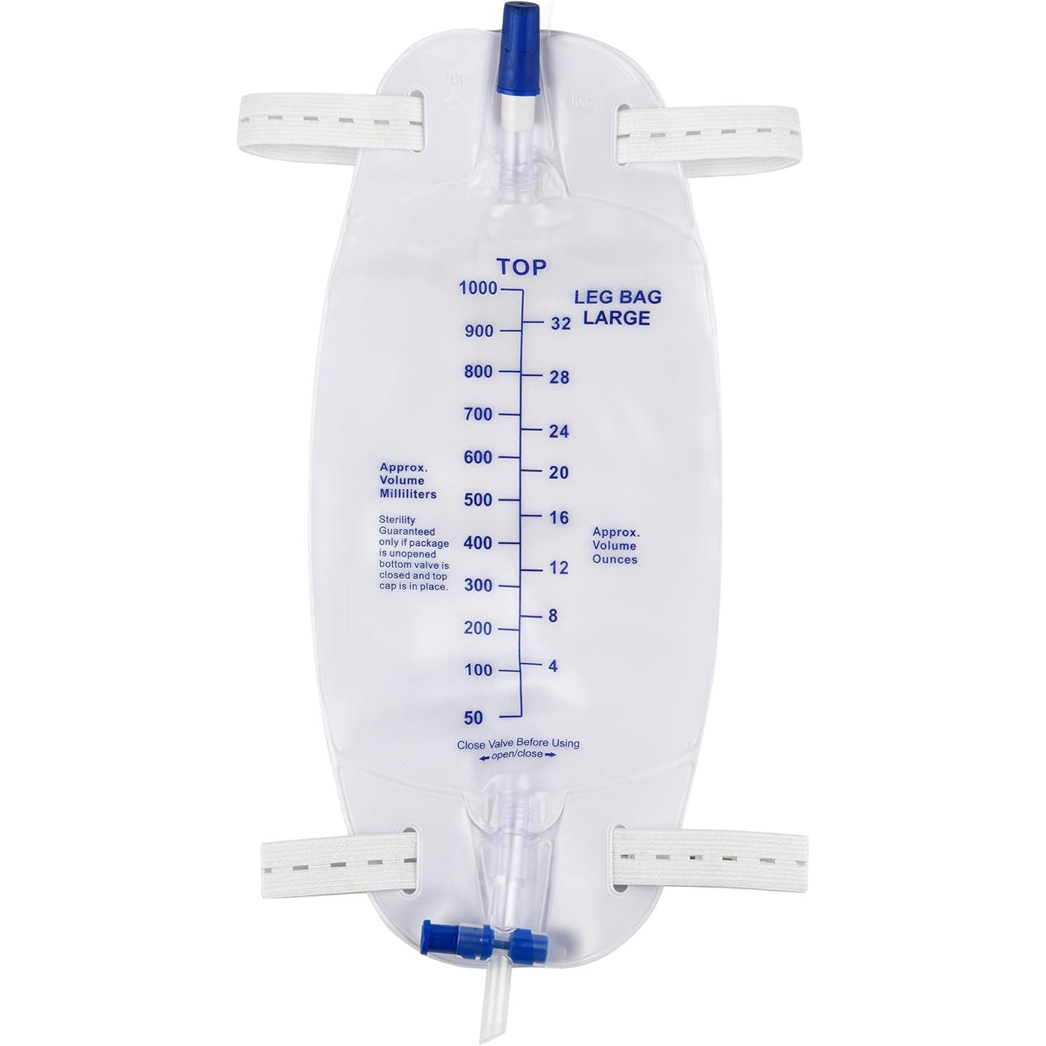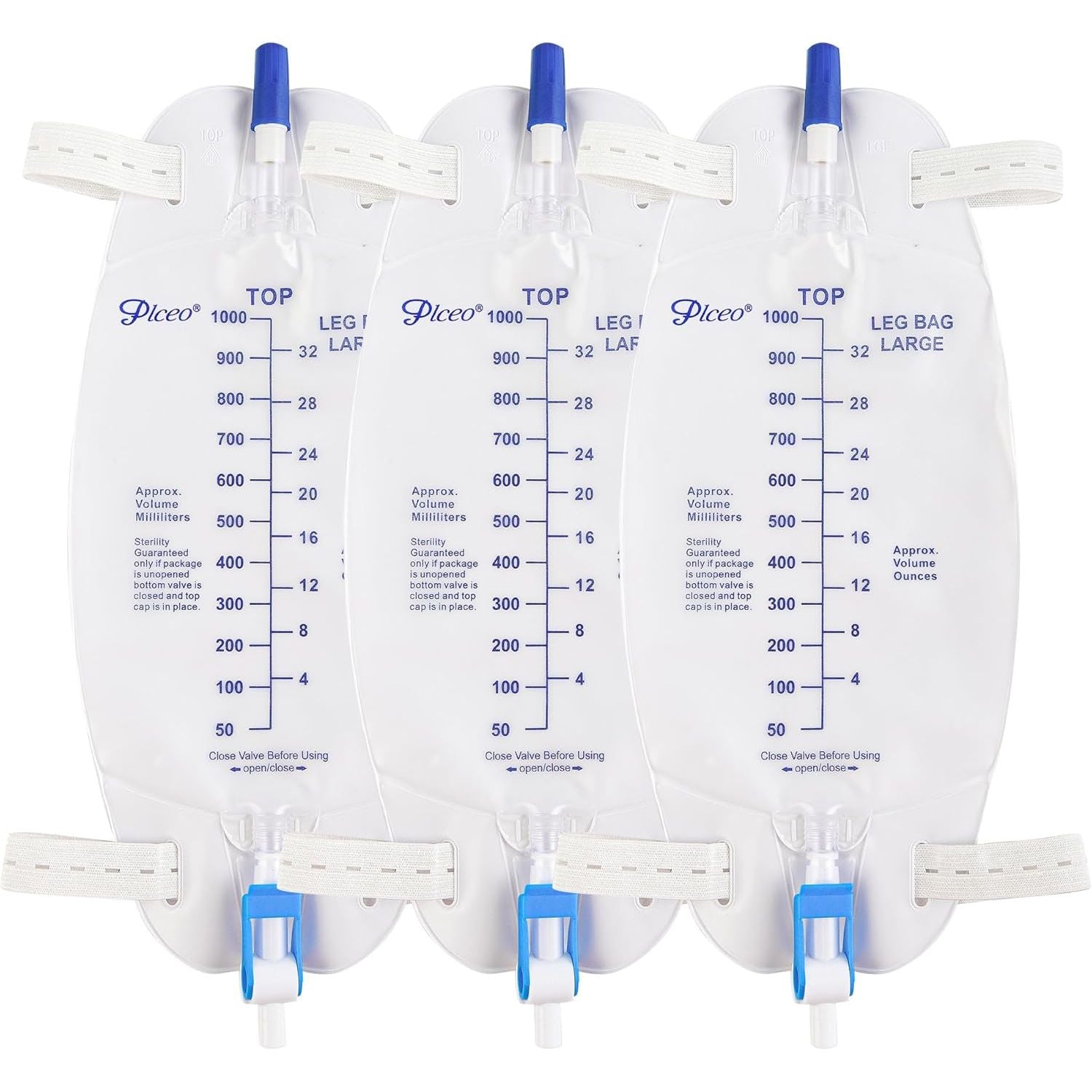 - Easy-Tap Leg Bag Urinary Drainage Bag, 1000ml, Anti-Reflux Valve, Cloth Straps, Easy Flip Drain (Pack of 3)