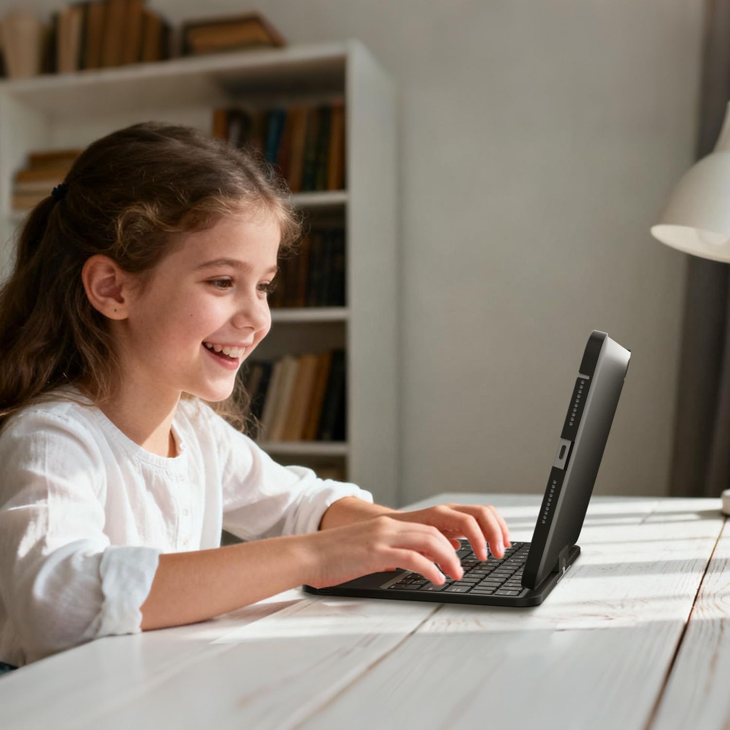 - 【PERFECTLY DESIGNED FOR SMALL HANDS】Features a compact keyboard with 1.5×12.9mm keys, perfectly sized for younger fingers to type comfortably and accurately, reducing hand fatigue. A mindful design choice for optimal typing experience.