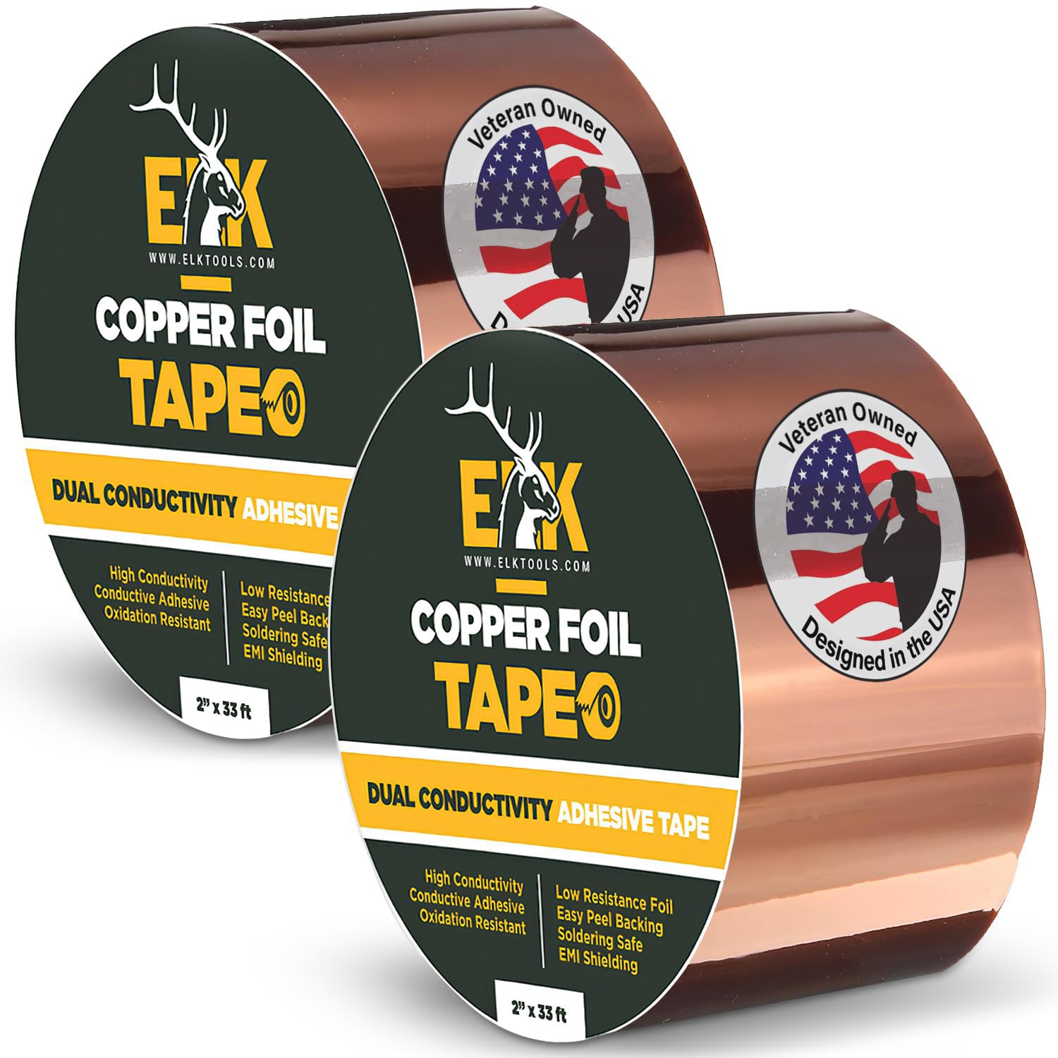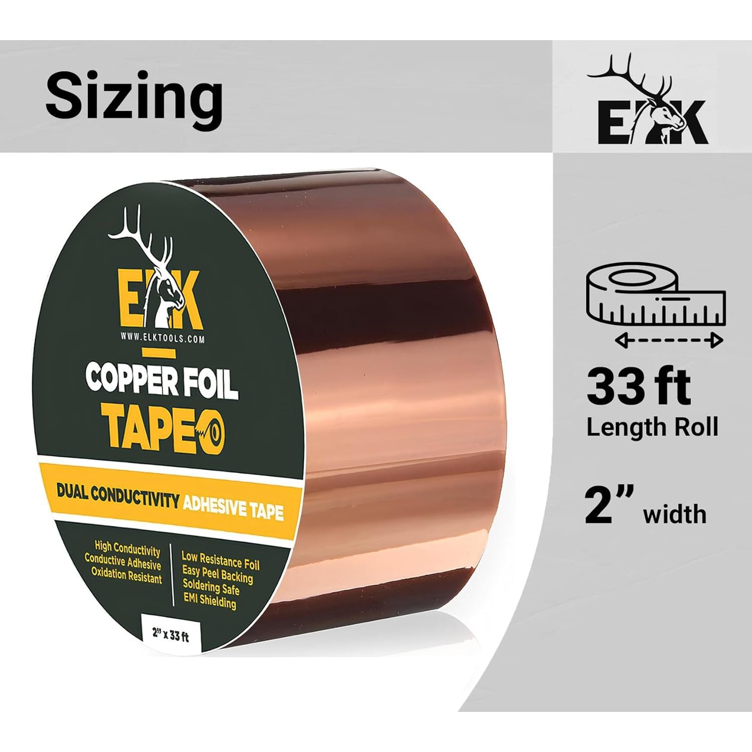 ELK Copper Foil Tape - 1” x 66ft - with Conductive Adhesive for Guitar, Crafts, Electrical Repairs and Grounding - Conductive Copper Tape