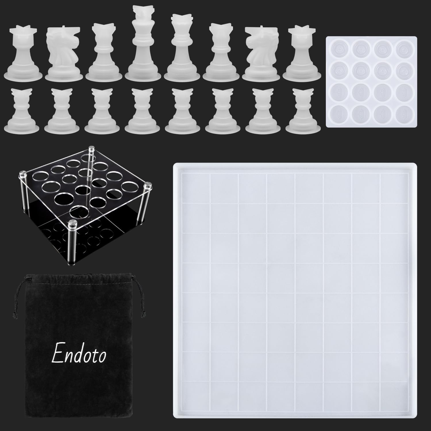 - Endoto Chess Set with Checkers Board Silicone Resin Mold, 16 Pieces Full Size 3D Chess Crystal Epoxy Casting Molds for DIY Art Crafts Making, Family Party Board Games and Home Decoration