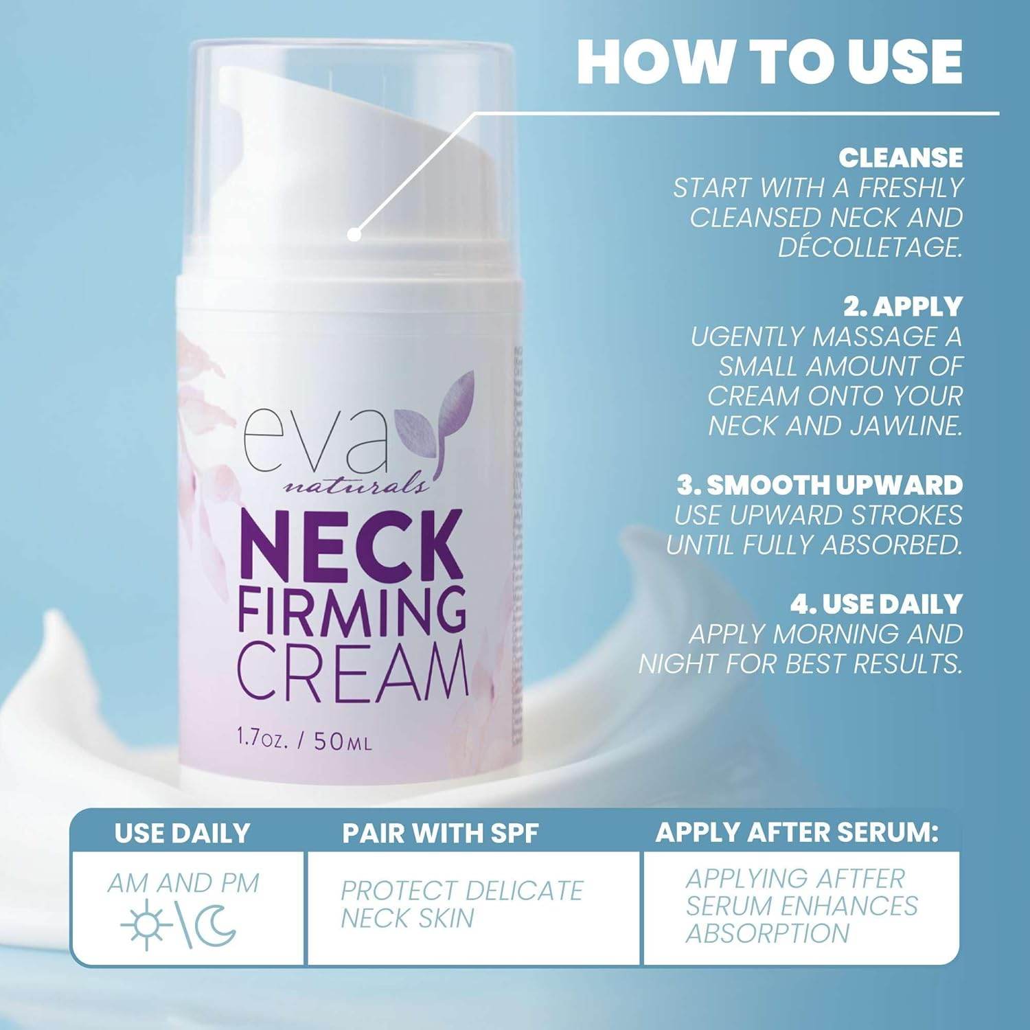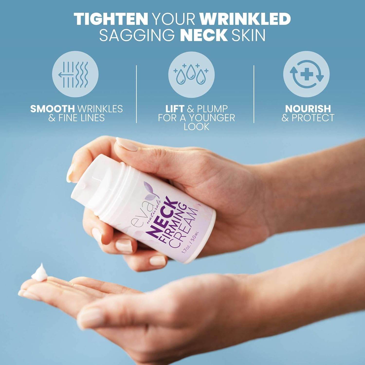 - Target Turkey Neck & Sagging Skin With Powerful Firming Action: Combat sagging skin, wrinkles, and turkey neck with Eva Naturals Neck Firming Cream. Our advanced formula boosts collagen production, improving skin elasticity for a tighter, firmer appearance. Specifically designed for face, neck, and décolleté care, this anti-aging cream helps lift and smooth aging skin while reducing visible neck lines. Ideal for women seeking visible tightening and firming results.