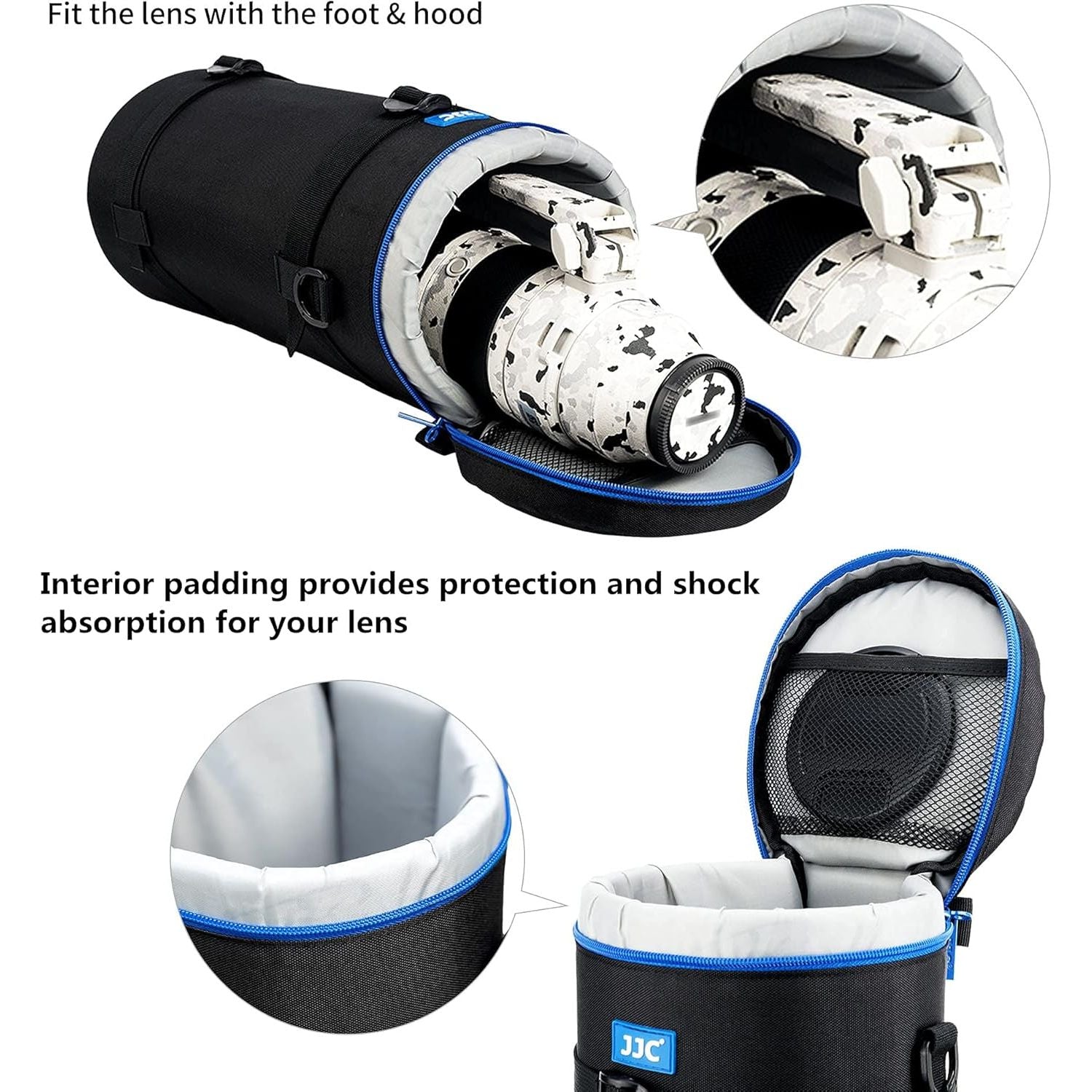 - 【Note】This camera lens case has large internal space suitable for lenses with reversed lens hood or teleconverter, but the total length of lens and accessories shall not exceed 14.6'' (370 mm).