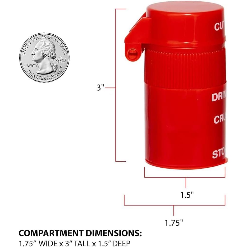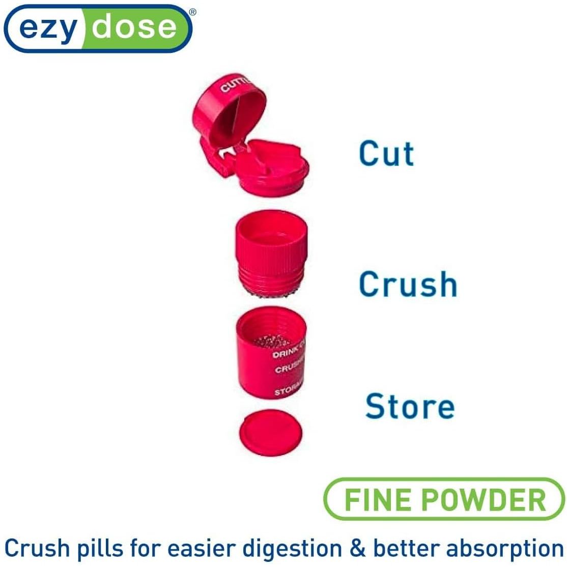 - EZY DOSE 3 Compartment Pill Crusher, Cutter and Grinder, Daily Usage, Safely Cut Pills, Vitamins, Tablets, Accurate and Easy Cutting, Stainless Steel Blade, Removable Drinking Cup, Red, BPA Free