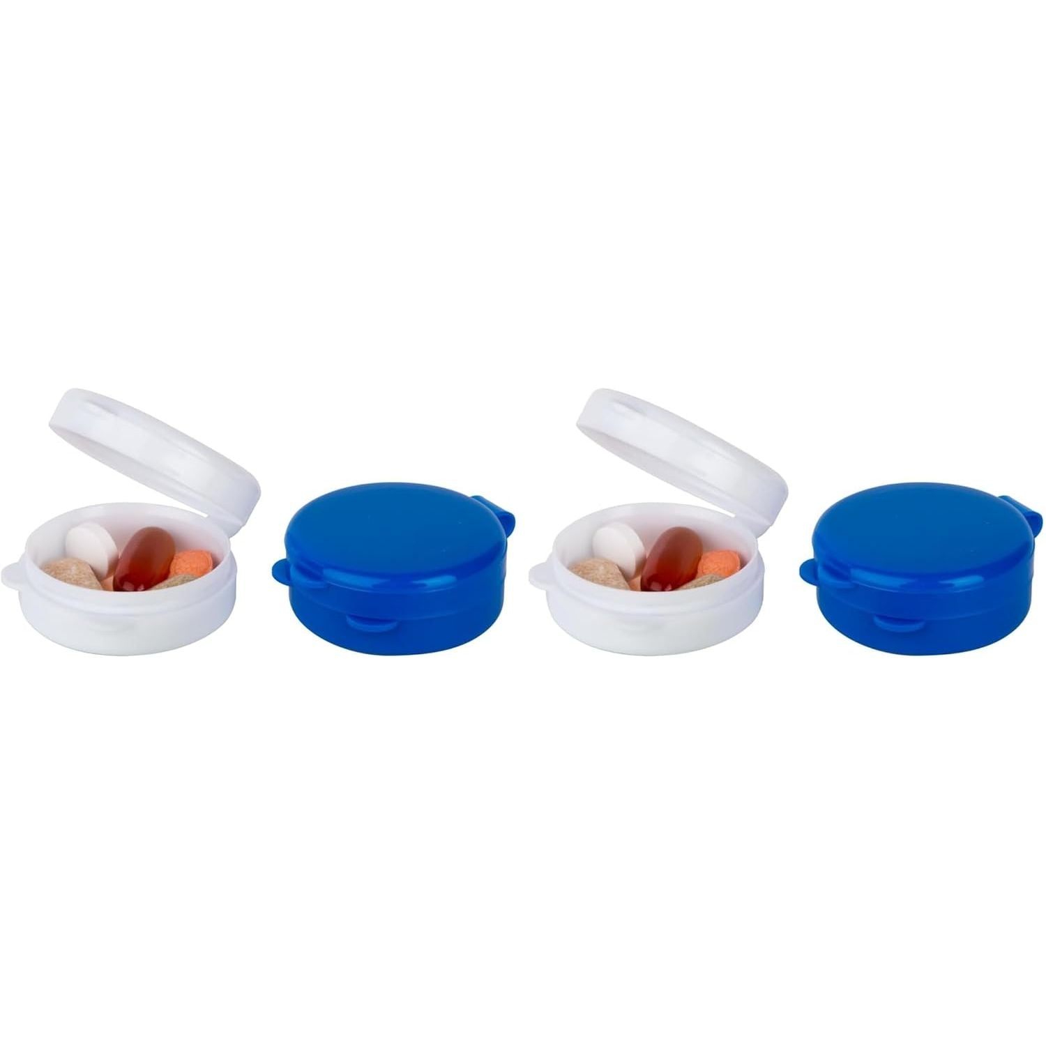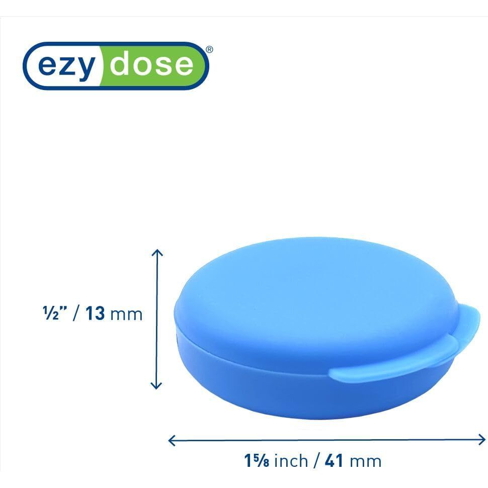 - EZY DOSE Daily Round, Compact, Small, Discrete, Portable On-The-Go Pocket Pharmacy, Pill Box, Organizer and Vitamin Containers, Snap Shut Lids, Travel Friendly, Blue and Green, 2 Pack, BPA Free
