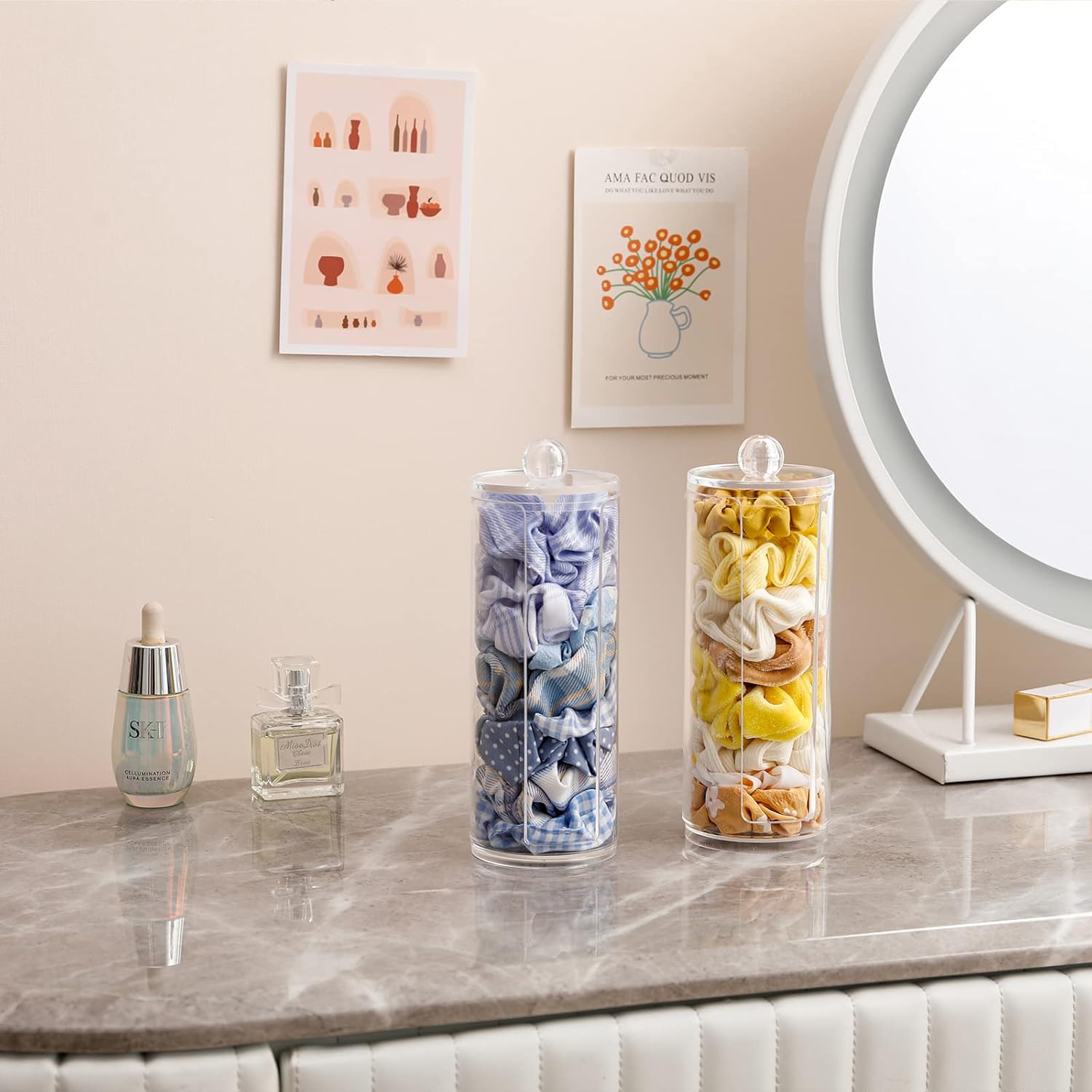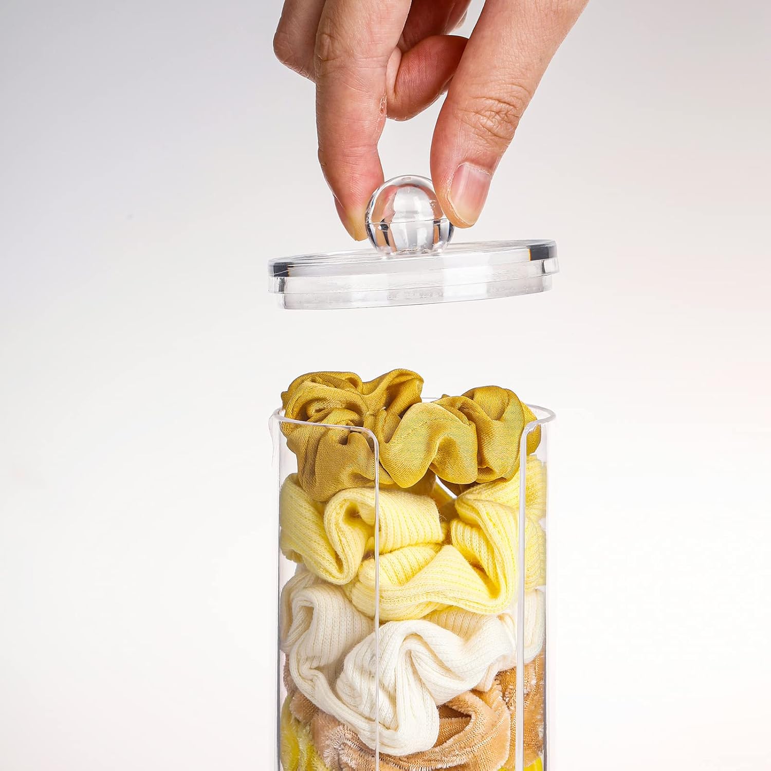 - FABROK Clear Scrunchie Holder Stand, Hair Tie Organizer Stand with Lid, Portable Hair Accessories Organizer Perfect Scrunchy Display Organizer for Teen Girls
