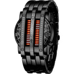 FANMIS Creative Mens Binary Matrix Blue LED Digital Watch Fashion Classic Black Plated Waterproof LED Backlight Bracelet Watches