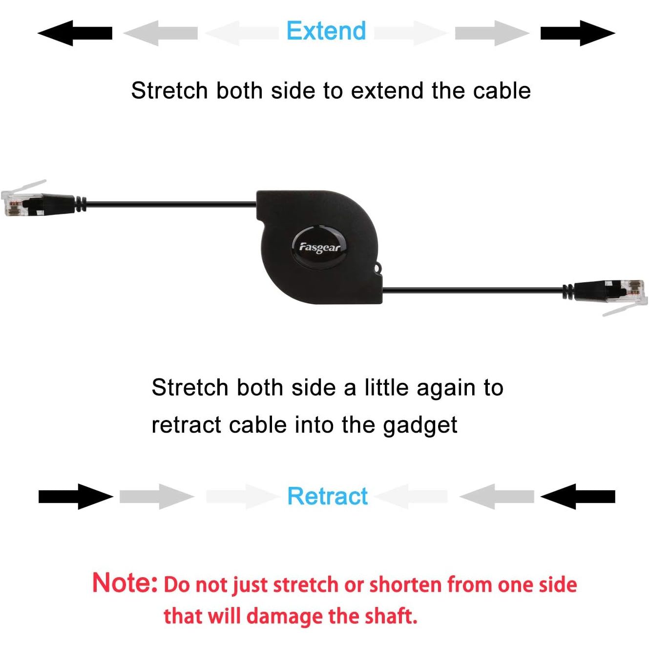 Extend and retract the gadget from both sides at the same time, feel free to transform the length you want.