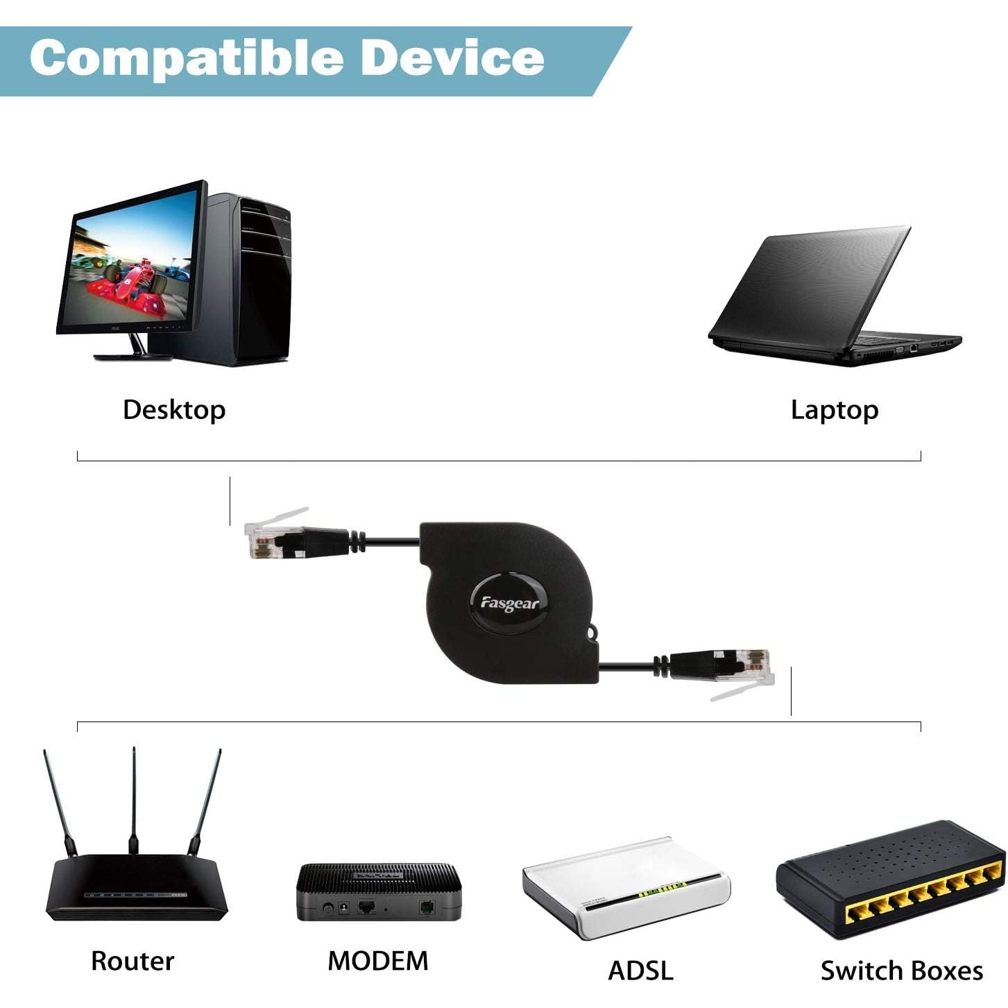 - Fasgear Cat6 Ethernet Cable [1 Pack 1m/3ft Black] Adjustable Flat Internet Network LAN Patch Cord High Speed 10Gbps Cat6 Computer Wire with RJ45 Connectors for Modem Router, PC, Mac, Laptop