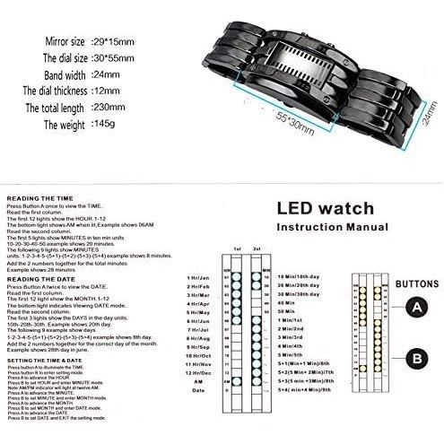 - Fashion Mens Binary Sports Watch Digital LED Matrix Waterproof Outdoor Casual Black Bracelet Square Blue Backlit Watches