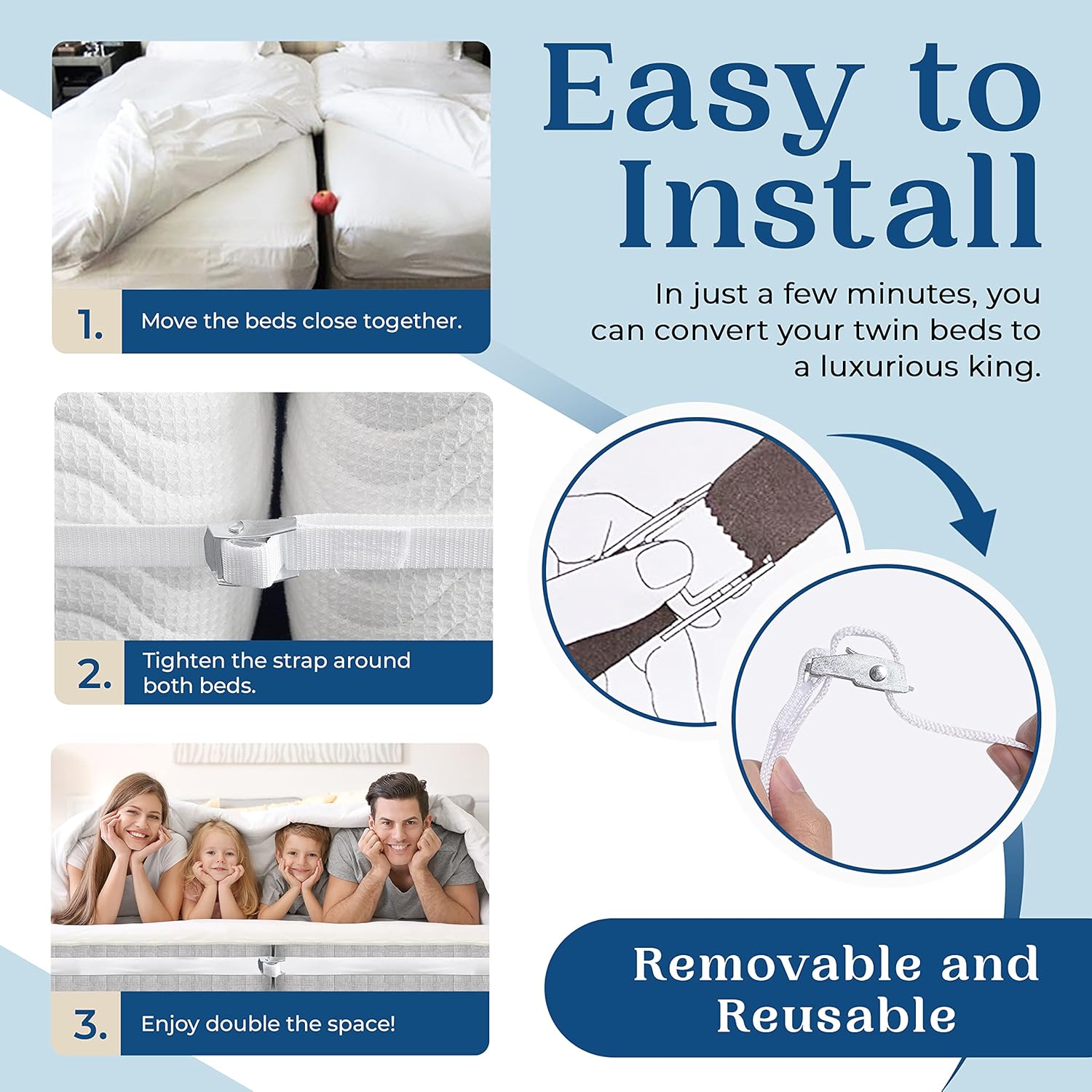 - Instant Bed Space Expansion: Double your bed space instantly with these bed straps to combine two mattresses into a king! Sleep like a baby with this twin mattress combiner. Ideal for holiday hosting, these bed straps ensure a restful sleep during winter nights
