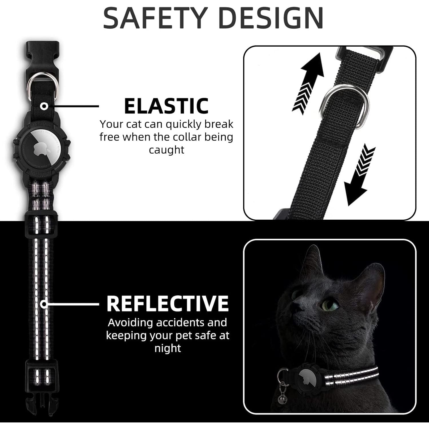 - [MAXIMUM SECURITY] Cat AirTag collar adds elastic strap, make sure that your cat can quickly break free when a foreign object is caught in the neck. In addition, AirTag collar has two reflective strips, you can easily find your cat at night.