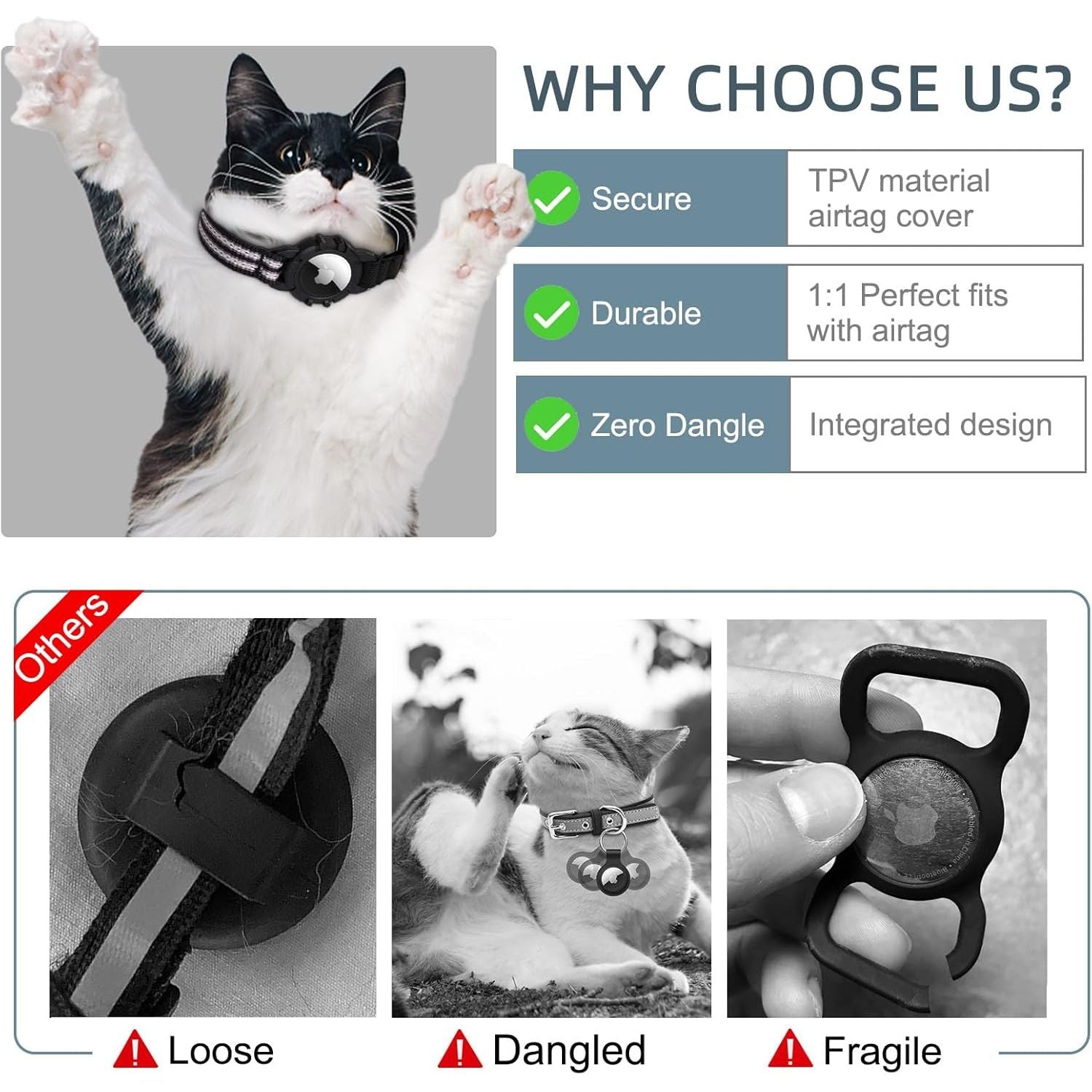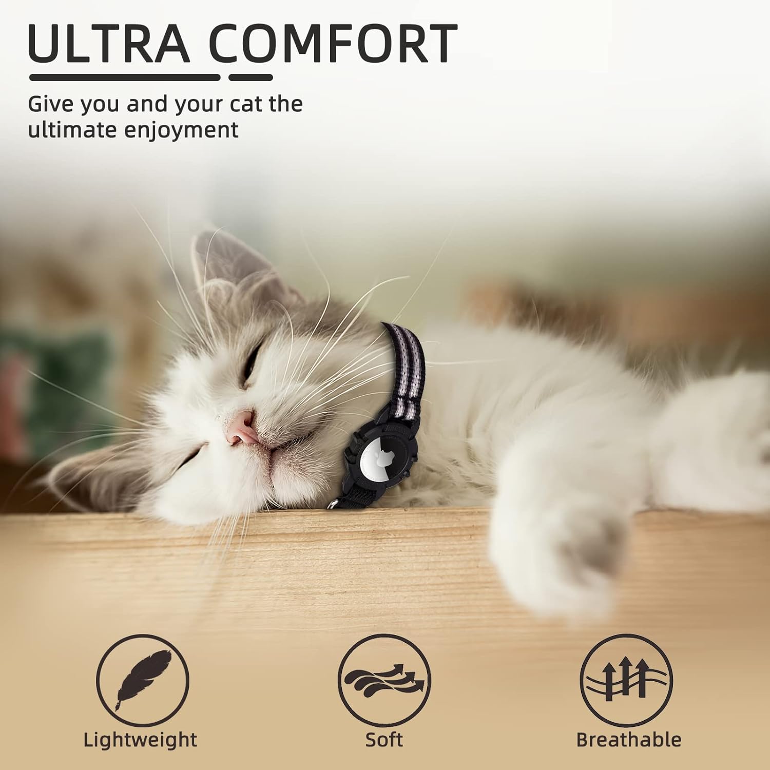 - [LIGHTWEIGHT&COMFORTABLE] This Air Tag cat collar is made of well-sewn nylon that won't scratch your cat's skin or cause any allergies. The lightweight AirTag holder is made of TPV, your cat will not experience any discomfort from wearing it for long periods of time.