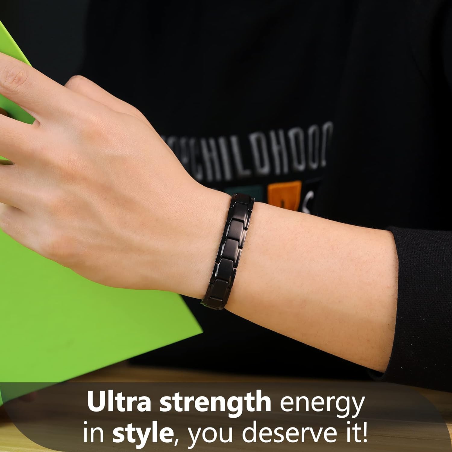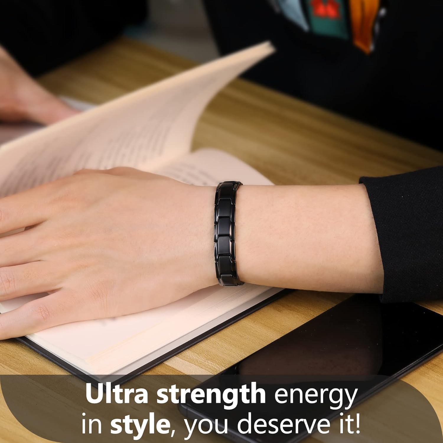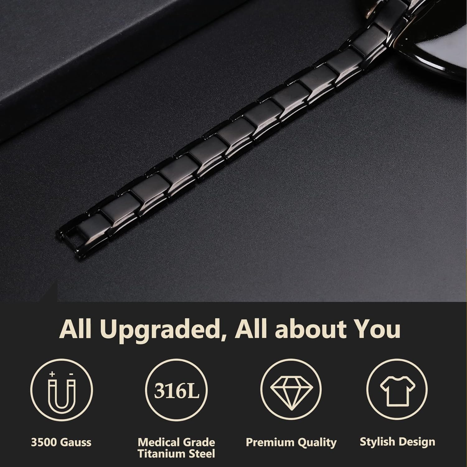 - Feraco Mens Magnetic Bracelet, Effective Titanium Steel Magnet Bracelets with Sizing Tool, Black