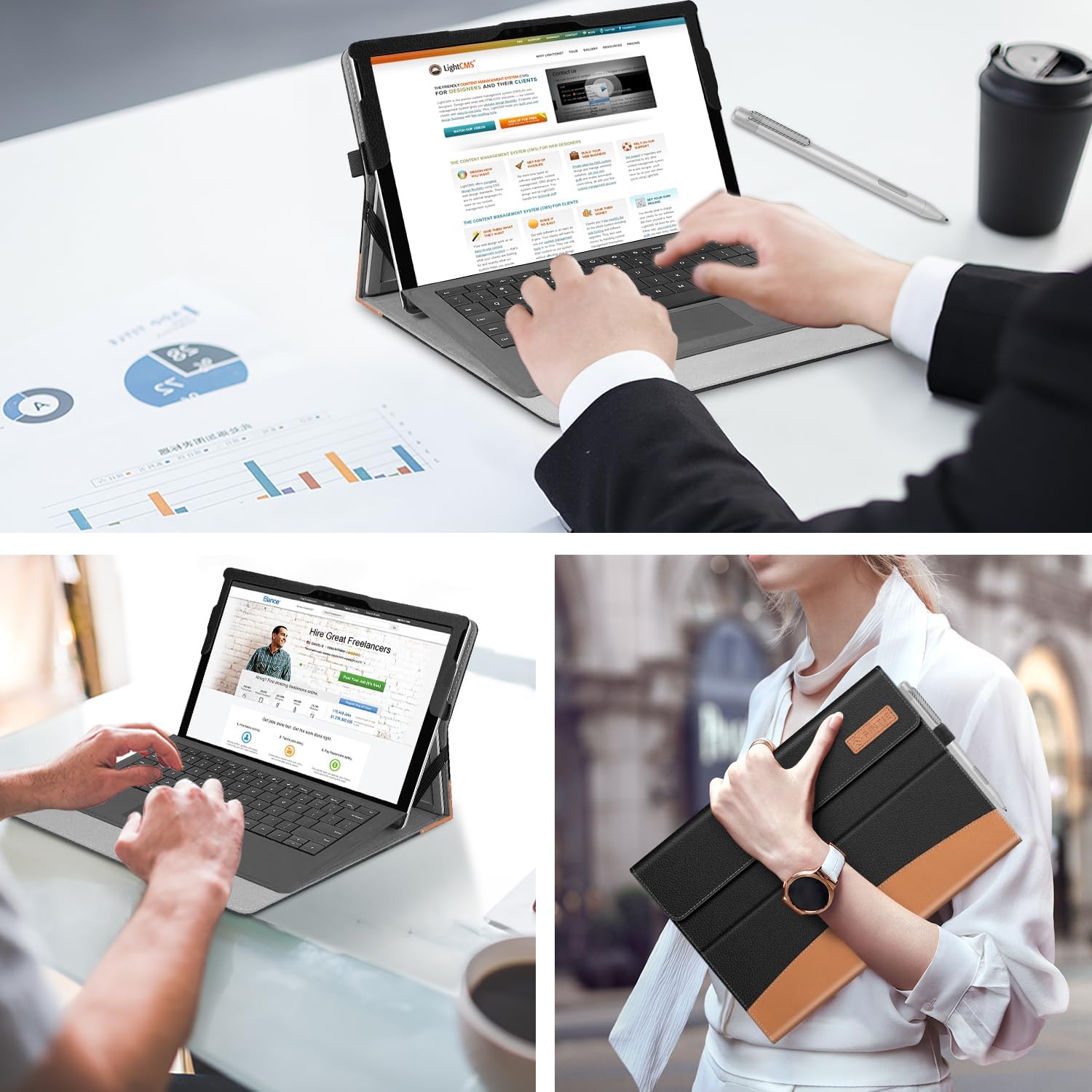 - Fintie Case for 12.3 Inch Microsoft Surface Pro 7 Plus, Surface Pro 7/6/5/4/3 - Portfolio Business Cover with Pocket, Compatible with Type Cover Keyboard, Black