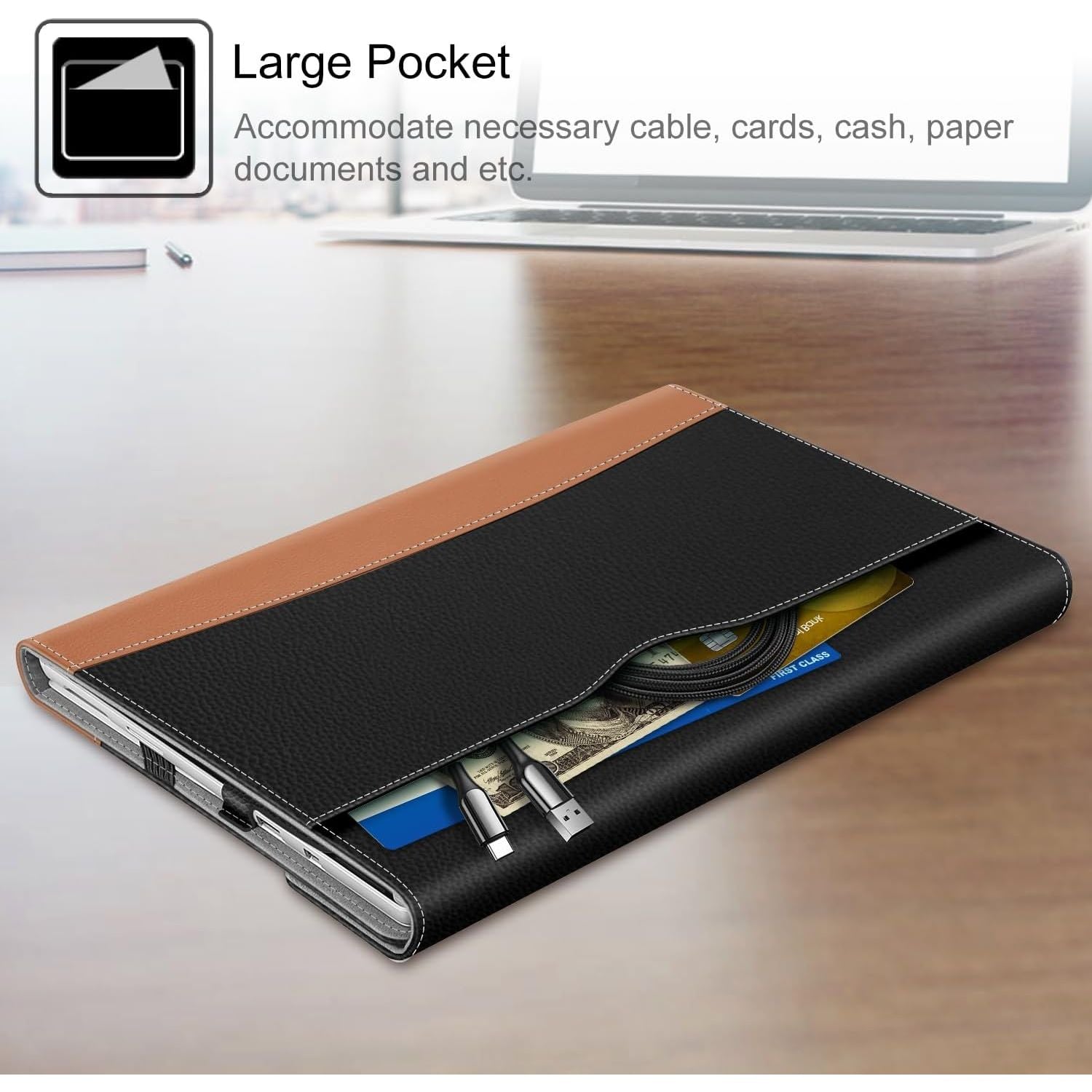 - Premium synthetic leather exterior and soft microfiber interior. Prevent from finger prints, dirt, and scratches.