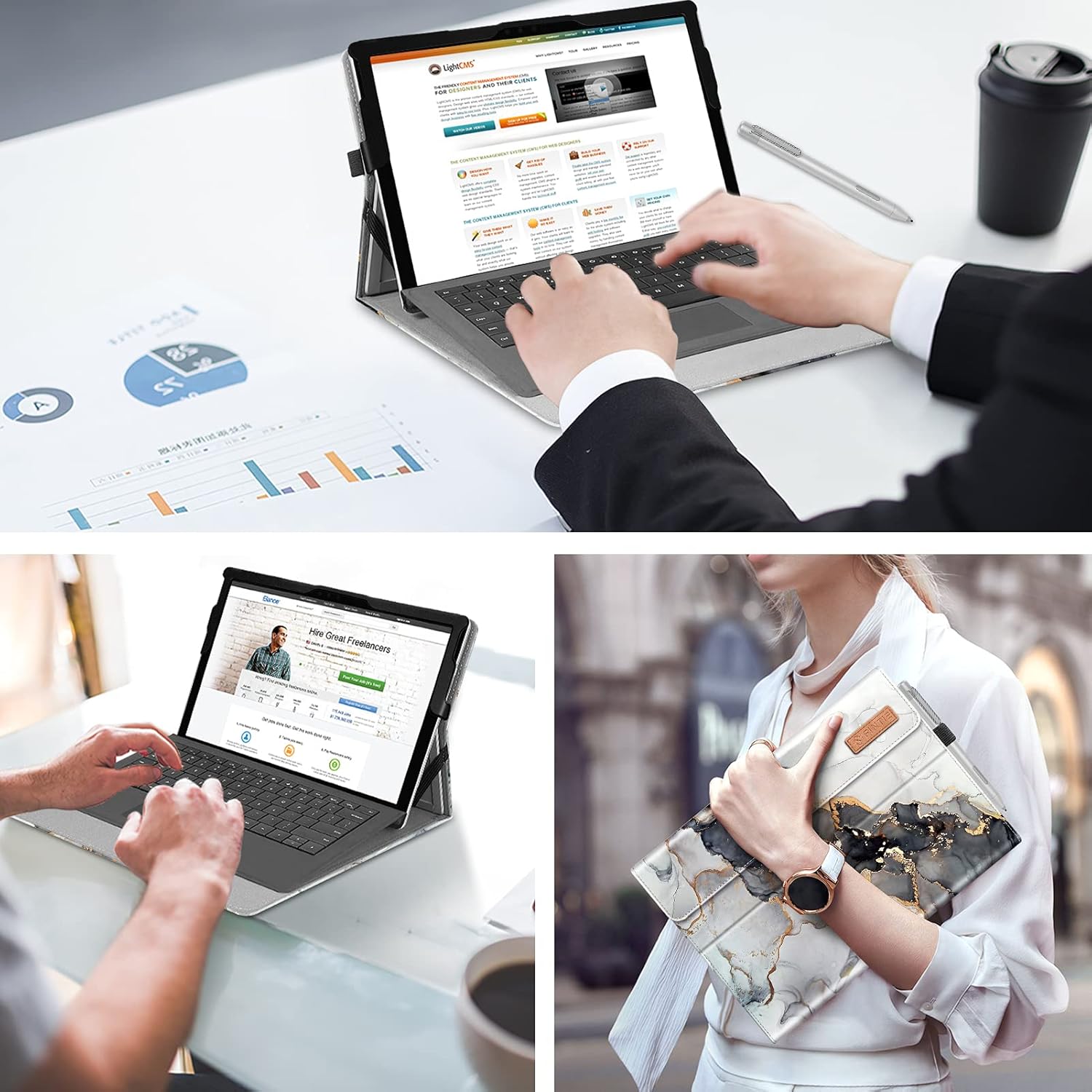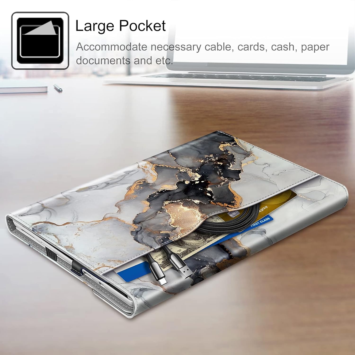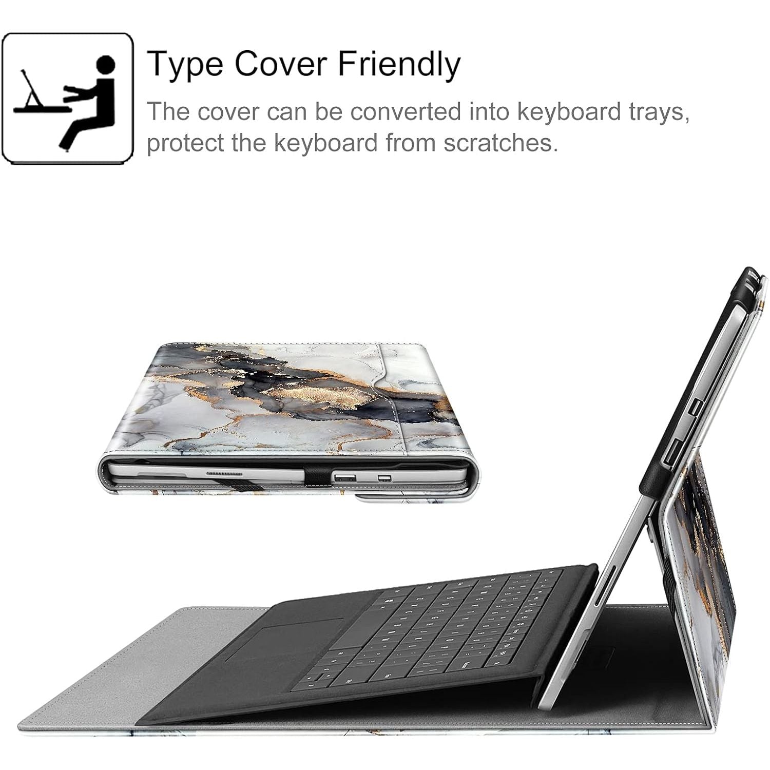 - Fintie Case for 12.3 Inch Microsoft Surface Pro 7 Plus, Surface Pro 7/6/5/4/3 - Portfolio Business Cover with Pocket, Compatible with Type Cover Keyboard, Cloudy Marble