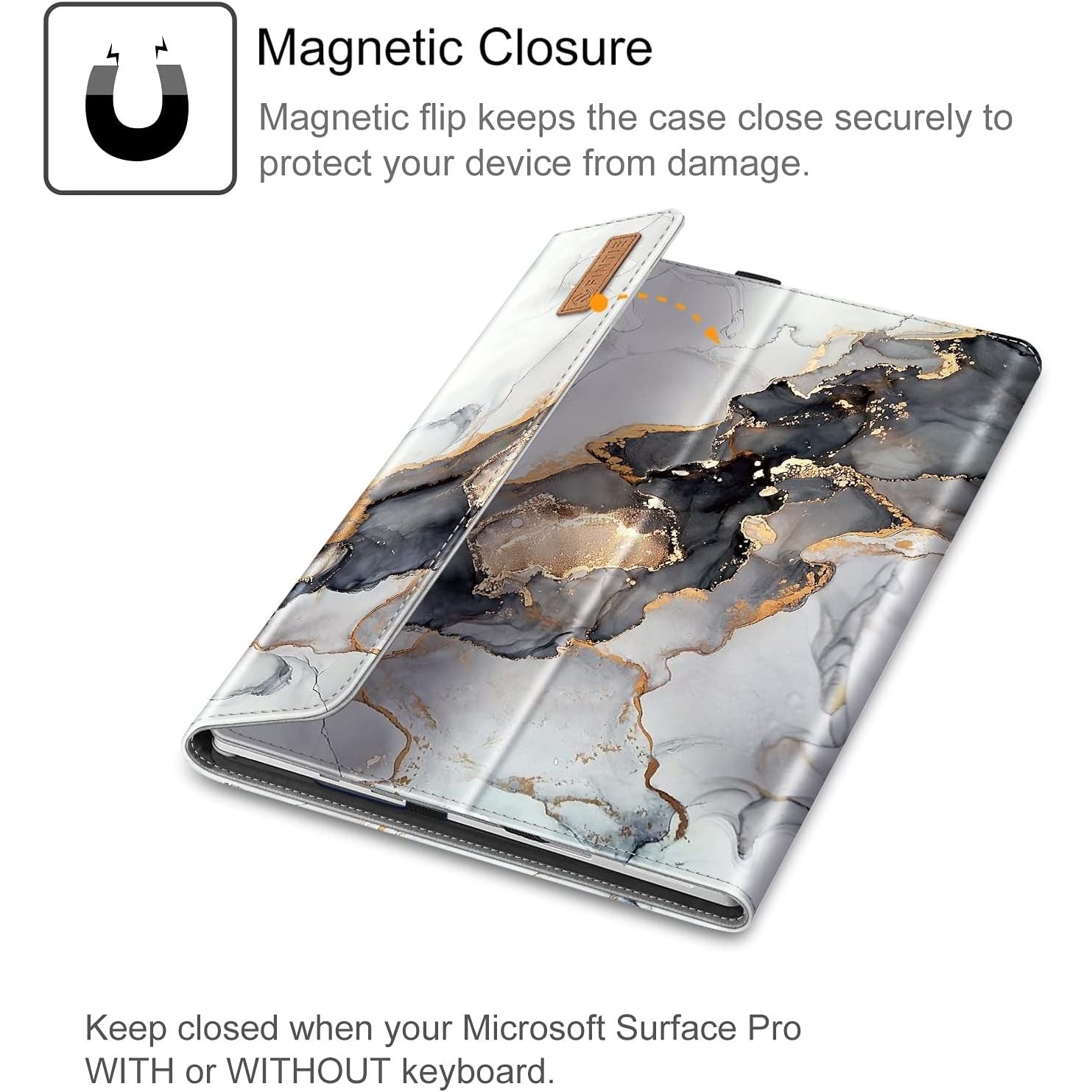 - Flip cover can be unfolded as a cushion for the keyboard, protect the keyboard from scratches. While both Microsoft Surface Pro tablet itself and the keyboard will be secured with a magnetic closure when close the flip cover.