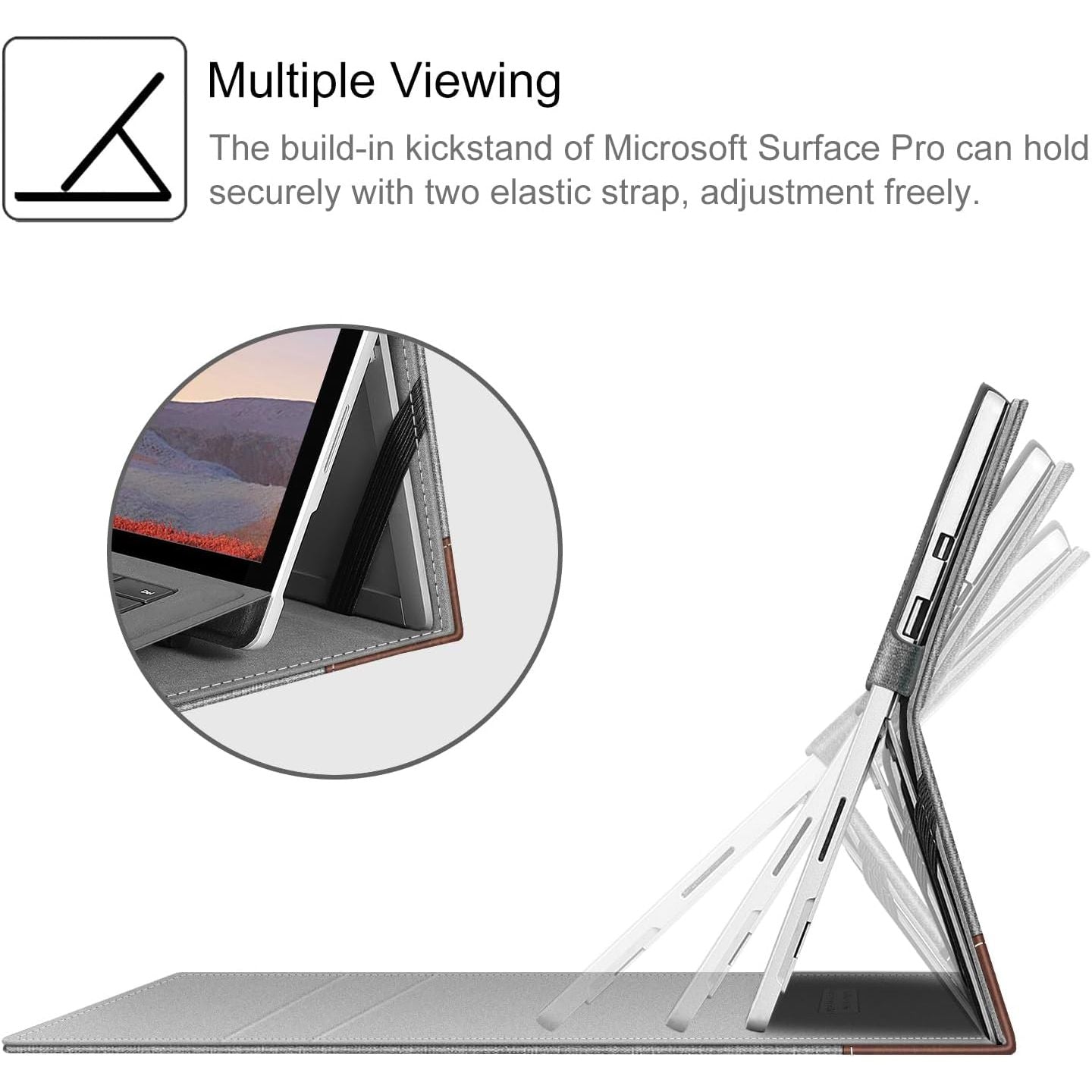 - Fintie Case for 12.3 Inch Microsoft Surface Pro 7 Plus, Surface Pro 7/6/5/4/3 - Portfolio Business Cover with Pocket, Compatible with Type Cover Keyboard, Gray/Brown