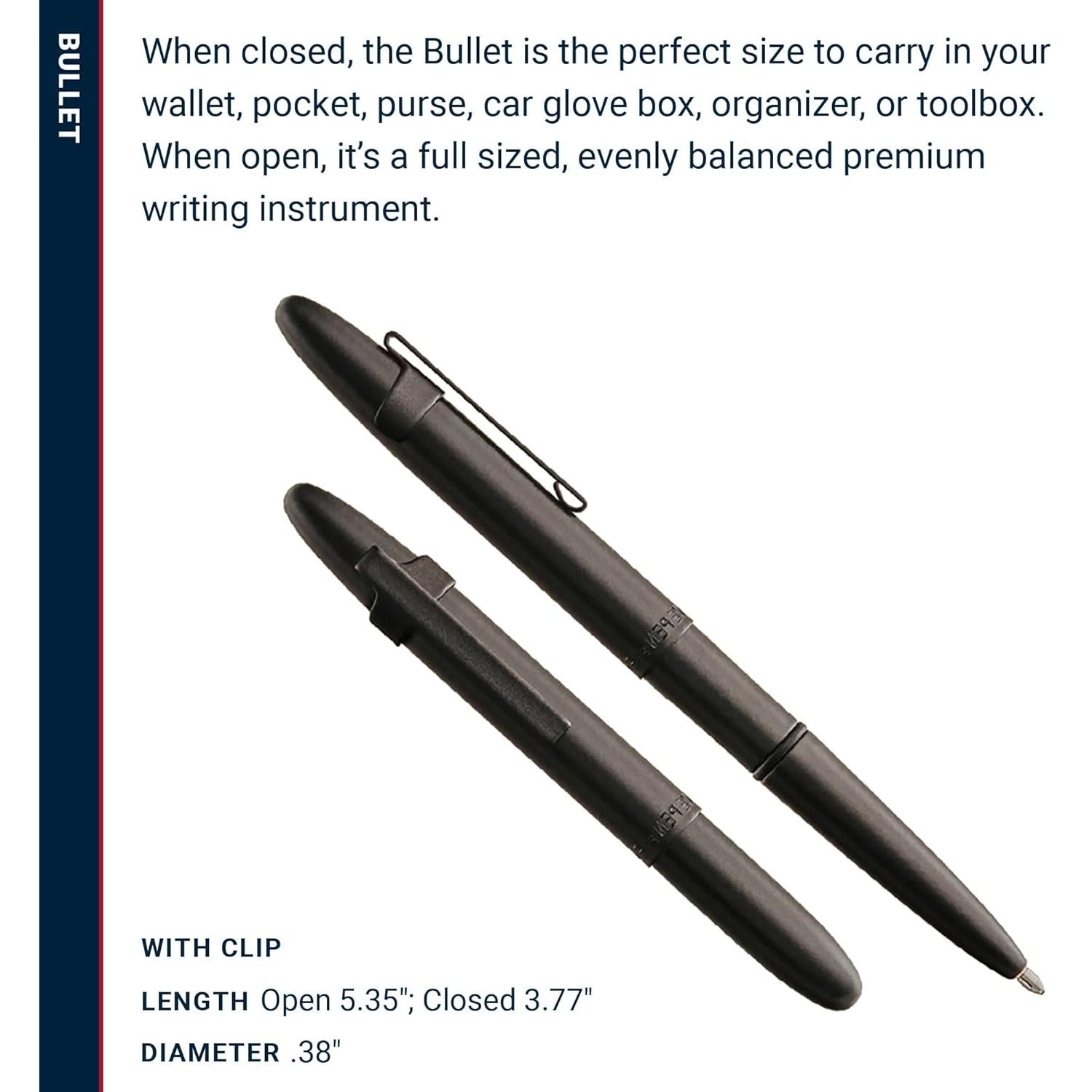 - Fisher Space Pen Bullet Pen, Ballpoint, Brass, Matte Black, Black Ink, Pocket Clip