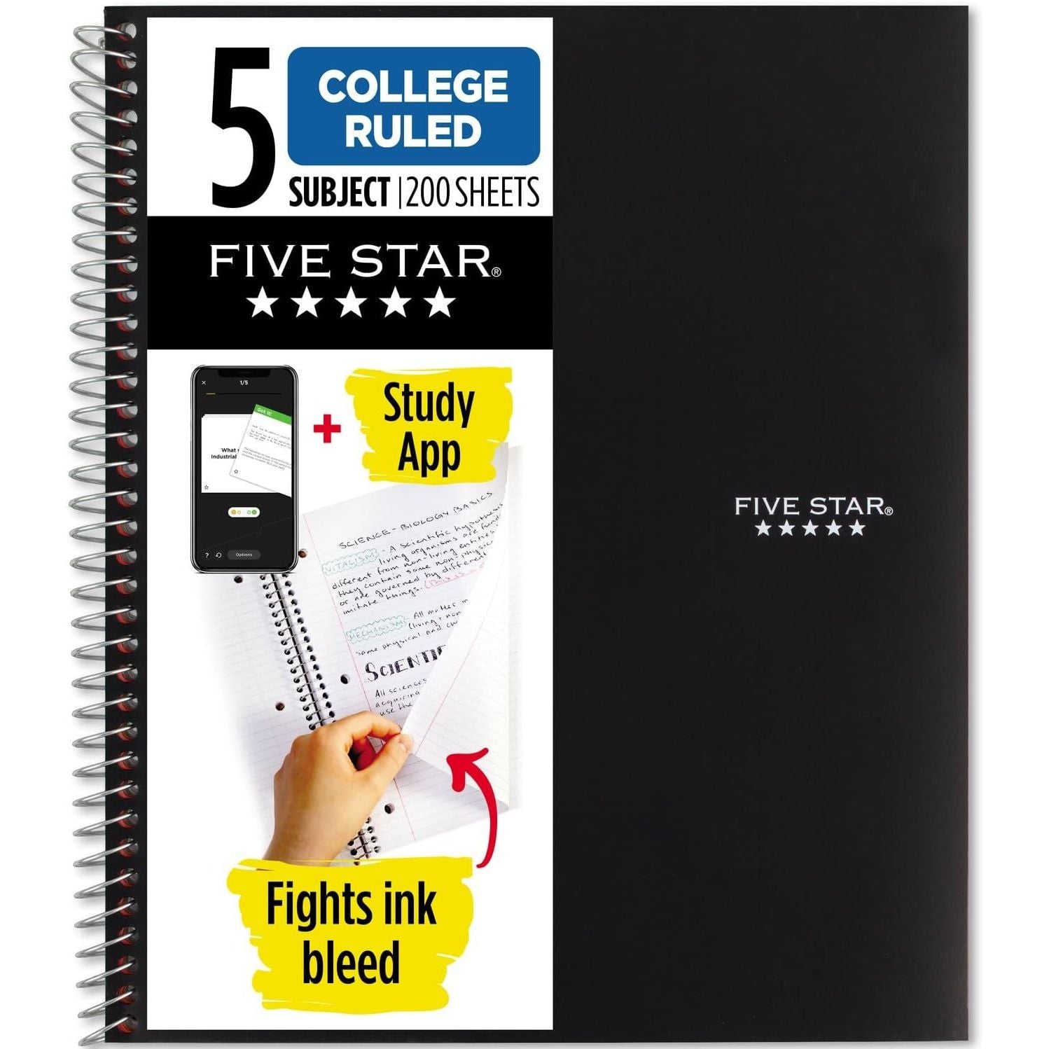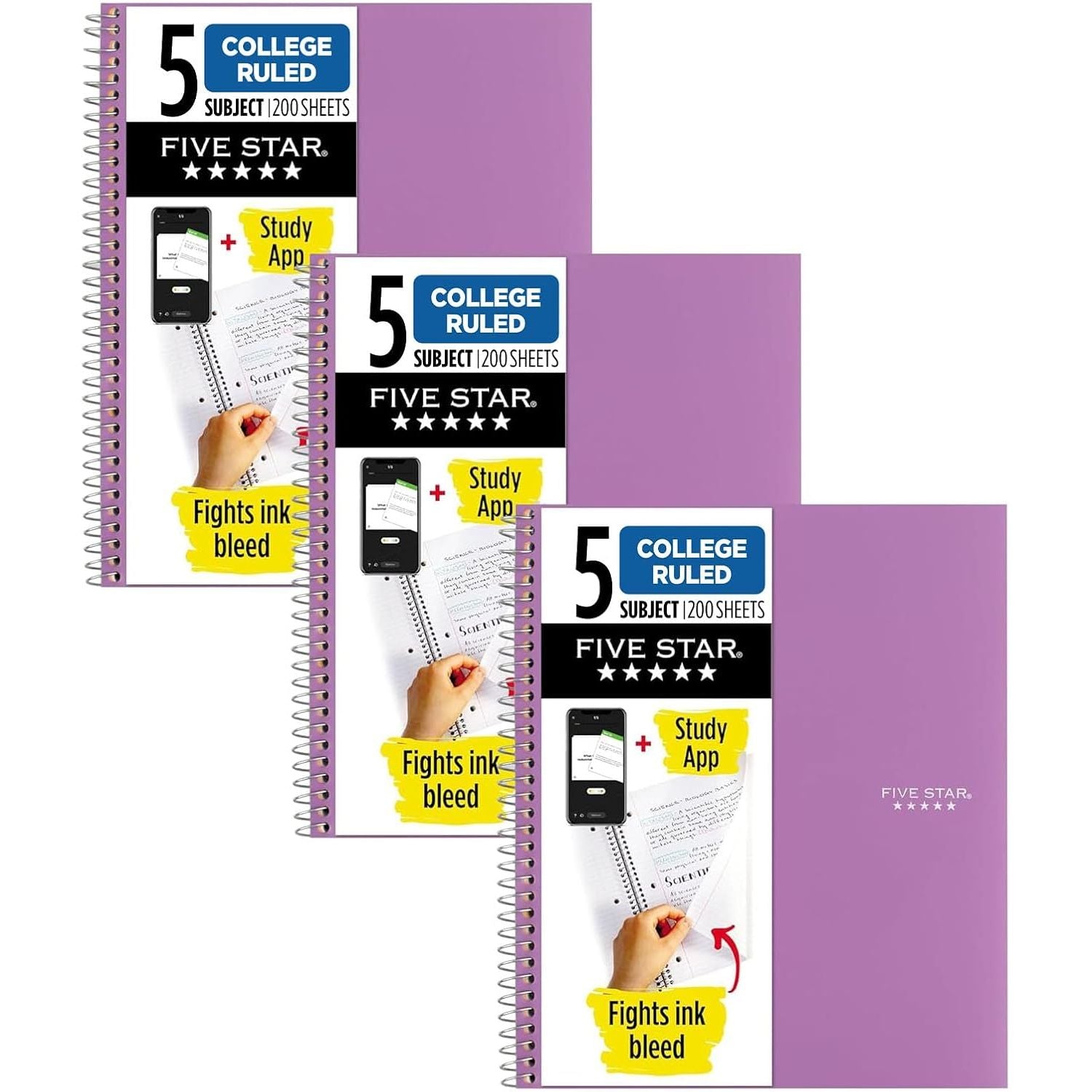 - Five Star Spiral Notebook + Study App, 5 Subject, College Ruled Paper, 8-1/2" x 11", 200 Sheets, Fights Ink Bleed, Water Resistant Cover, Amethyst Purple (38748)