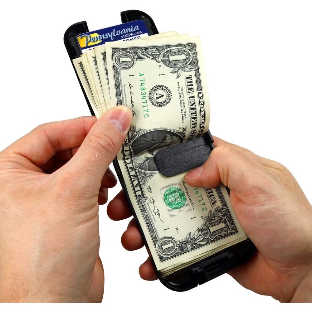 - PATENTED EASY TO USE DESIGN : Don't let the sleek, minimalist build of this wallet fool you; it can hold 8 cards and 10 U.S. bills in streamlined, quick access slots that allow you to eject cards with your thumbs or count through cash quickly. A detachable all-purpose clip with rubber strap are included for holding additional cards, business cards and money.