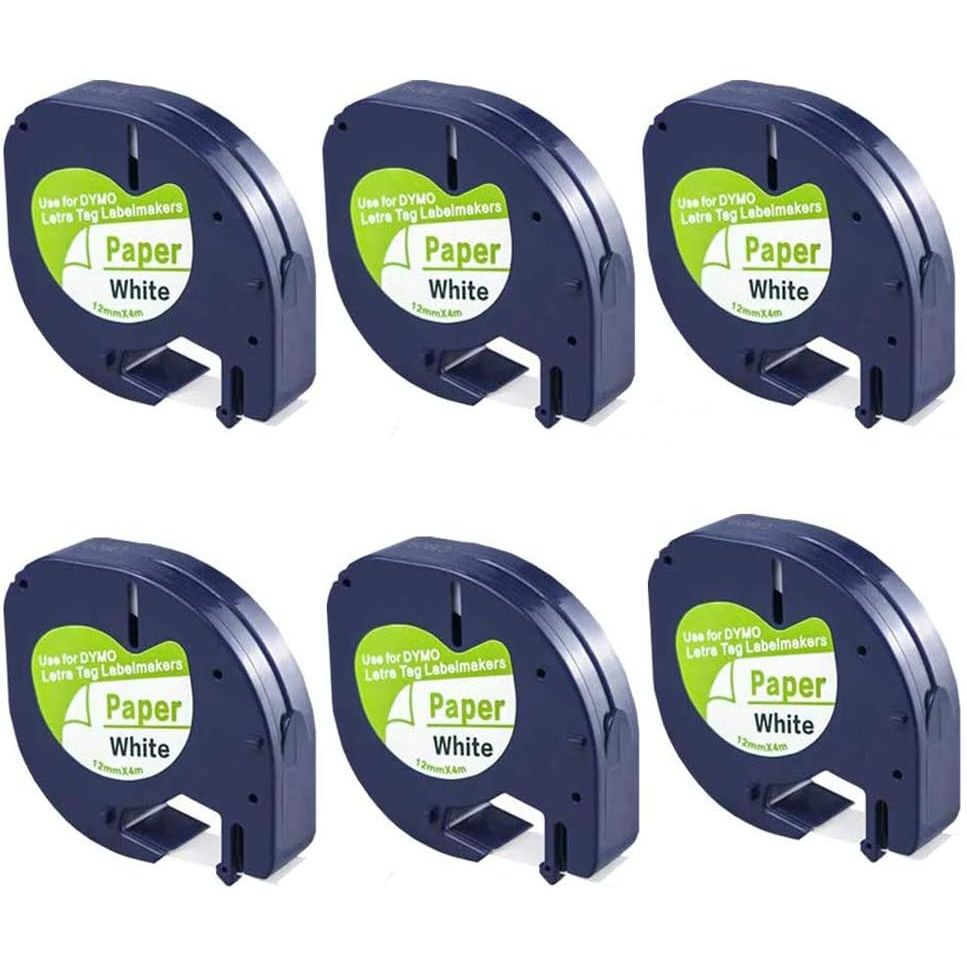 - Includes: 6Pack replace dymo Letratag 91330 label tapes; Color: black print on white; Size: 12mm x 4m (1/2 inch x 13 feet); Material: paper.