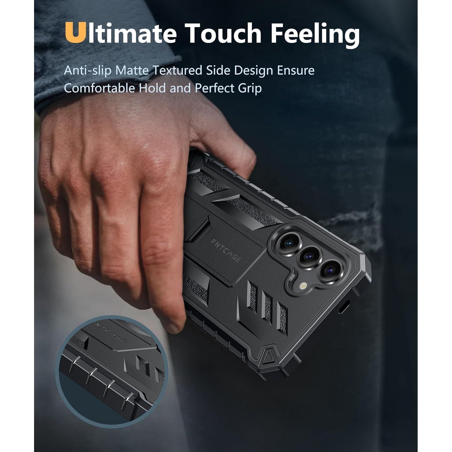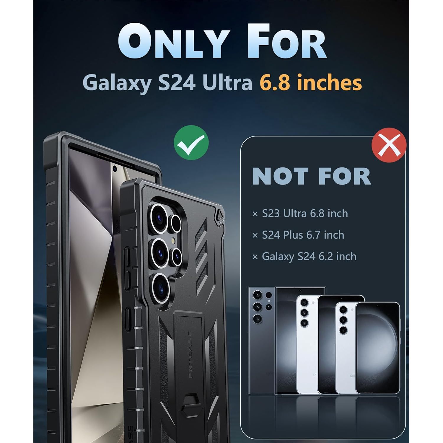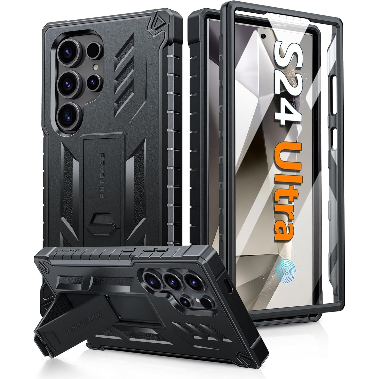 - FNTCASE for Samsung Galaxy S24-Ultra Case: Military Grade Drop Proof Protection Cases with Kickstand | Shockproof Rugged Hard Phonecase Heavy Duty Matte Textured Protective Cover - 6.8 Inch Black