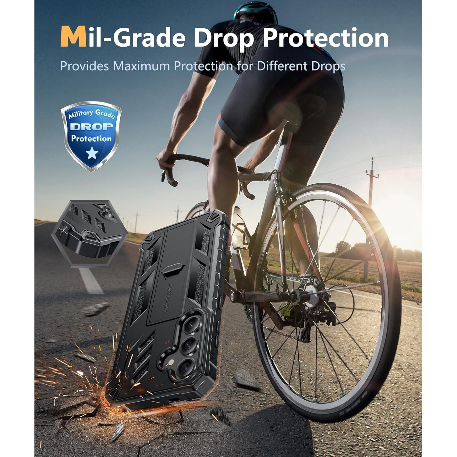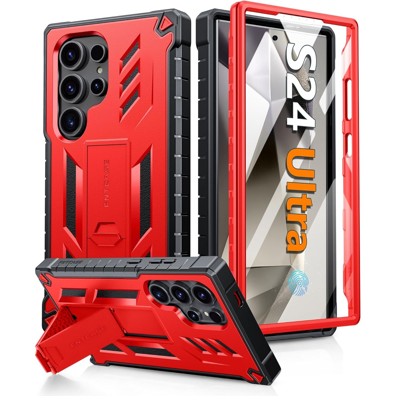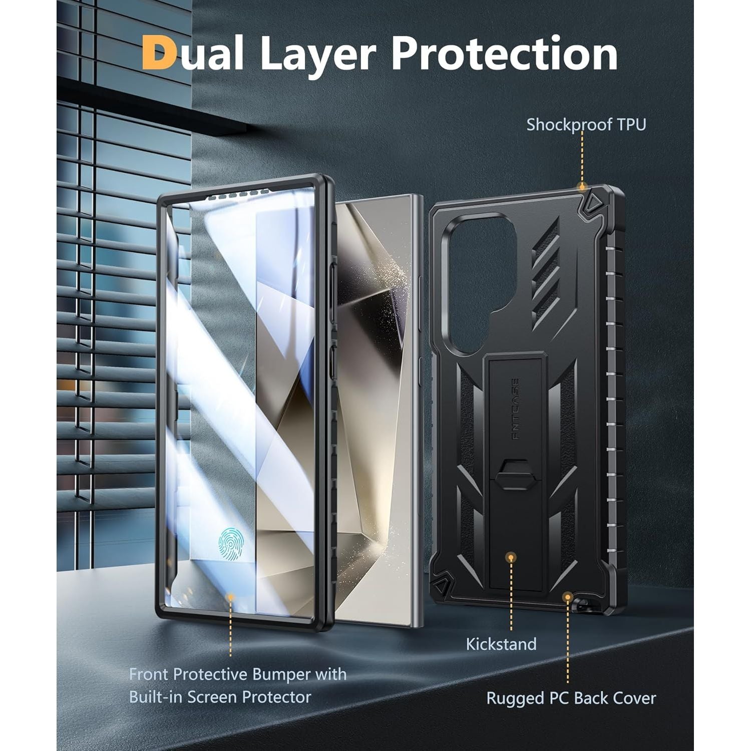 - FNTCASE for Samsung Galaxy S24-Ultra Case: Military Grade Drop Proof Protection Cases with Kickstand | Shockproof Rugged Hard Phonecase Heavy Duty Matte Textured Protective Cover - 6.8 Inch Black