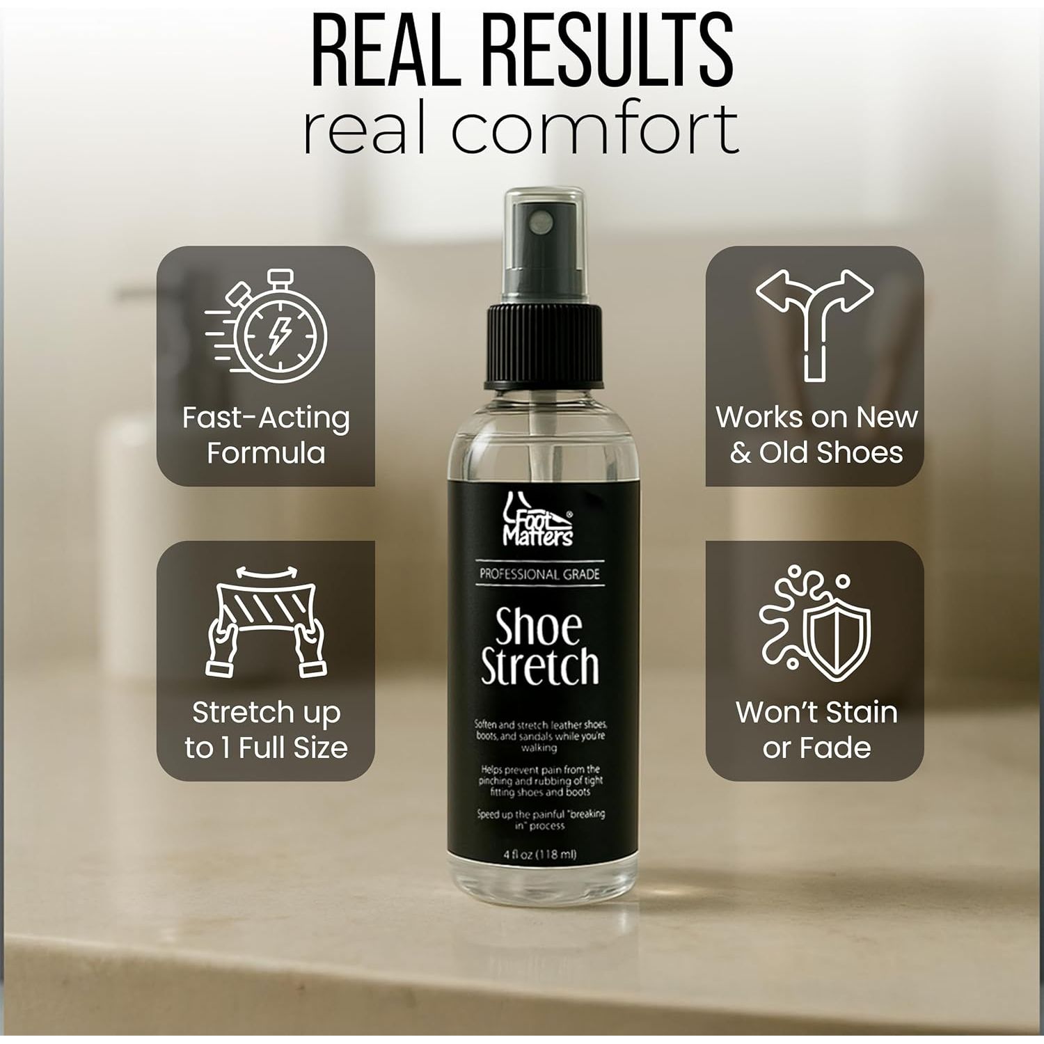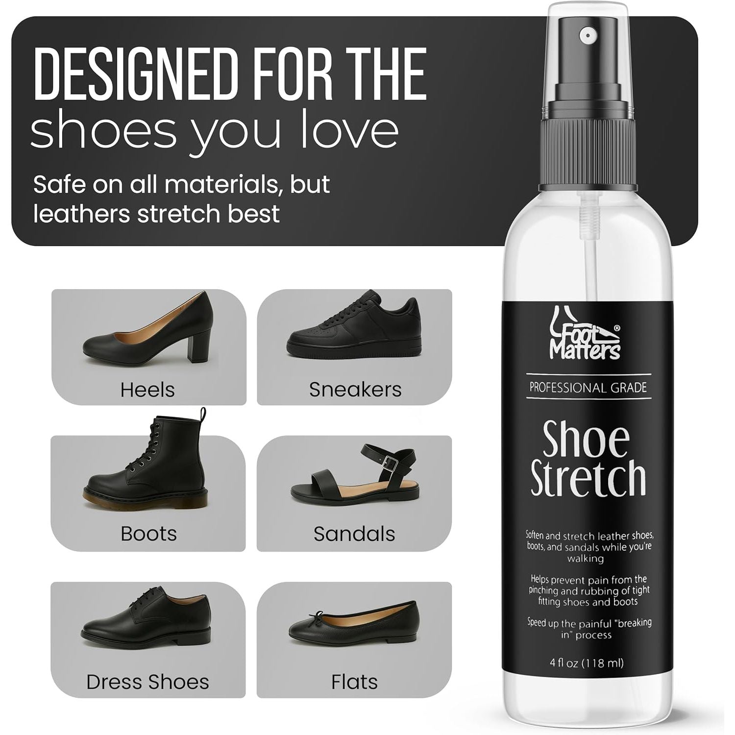- FOOTMATTERS Shoe Stretch Spray – Professional Shoe Stretcher - Softener for Leather, Suede, Nubuck, Canvas – 4 oz