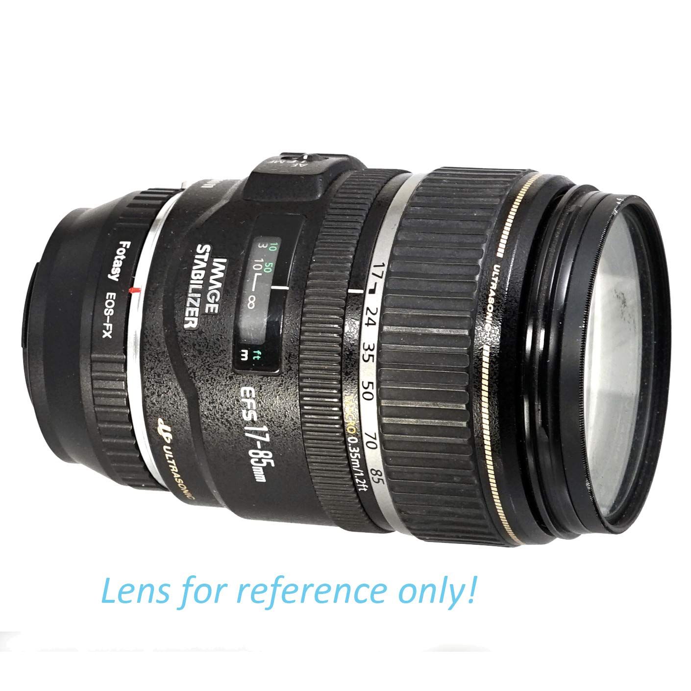 This Fotasy Lens Adapter allows you to attach Canon EOS (EF / EF-S) DSLR Lens on Fujifilm X-Series Mirrorless Camera body. Compatible with Fujifilm X-Mount Mirrorless Cameras - Popular models include: X-Pro1, X-Pro2, X-E1, X-E2, X-E2s, X-E3, X-A2, X-A3, X-A10, X-T10, X-T20, X-T1, X-T2 Notes: This is a manual adapter, so lens functions that rely on electronic communication with the camera body (autofocus, AE metering, image stabilization, etc) will be disrupted. Set your exposure manually or meter using your camera's Aperture Priority (stop-down) mode. As Canon EF/EFS lenses do not have a manual Aperture Control ring, the lens will be used wide open by default.