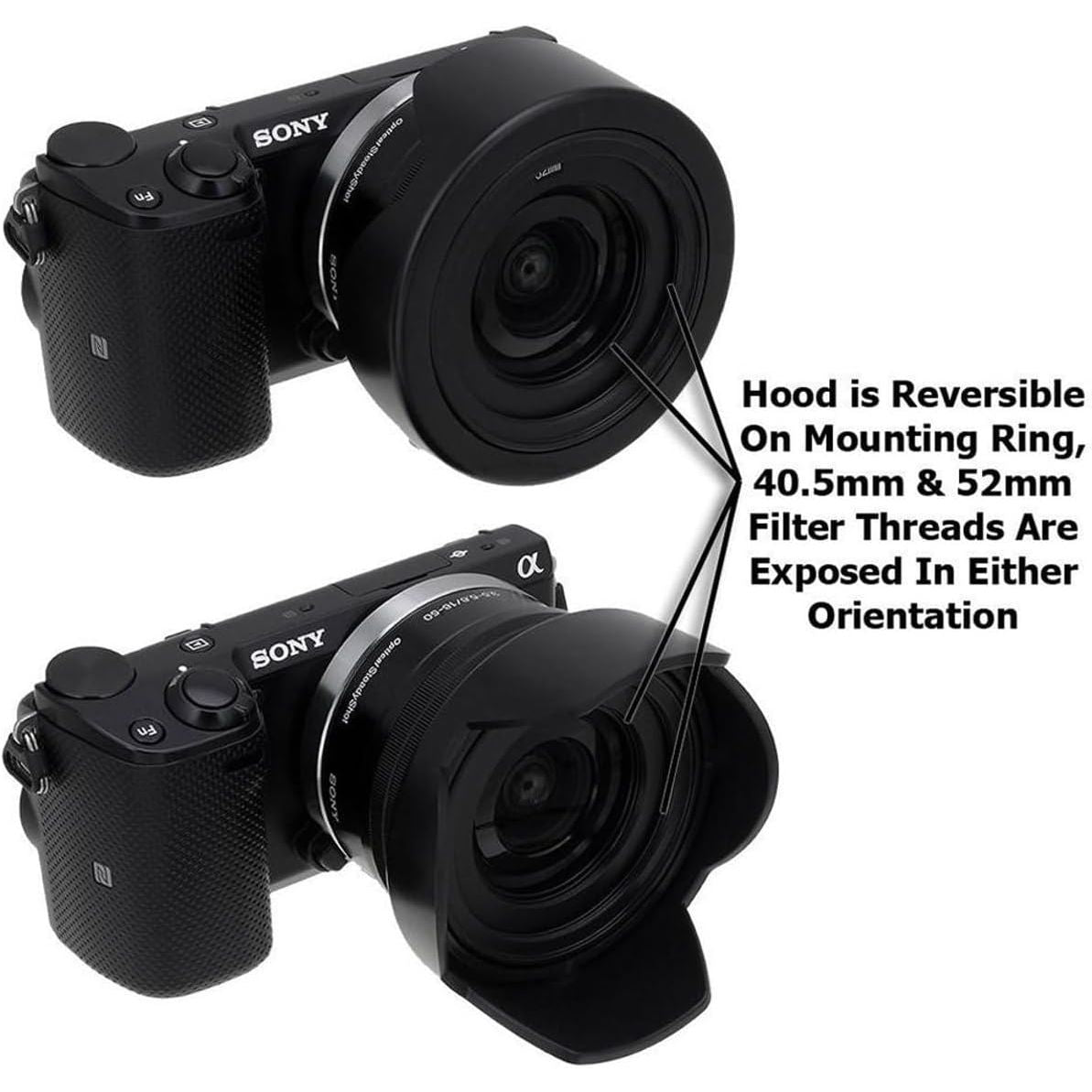 - Fotodiox Reversible Lens Hood Kit for E-Mount PZ 16-50mm F3.5-5.6 OSS E-Mount Power Zoom Lens, Reversible Tulip Flower Hood w/Cap