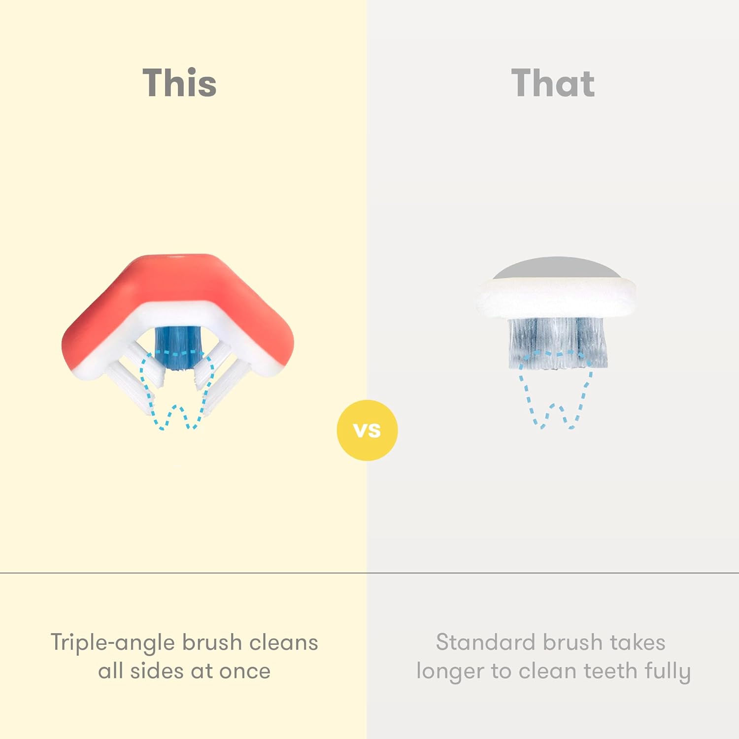 - TRIPLE-ANGLE BRUSH: Dentist-recommended, unique brush head cleans all sides of the tooth all at once