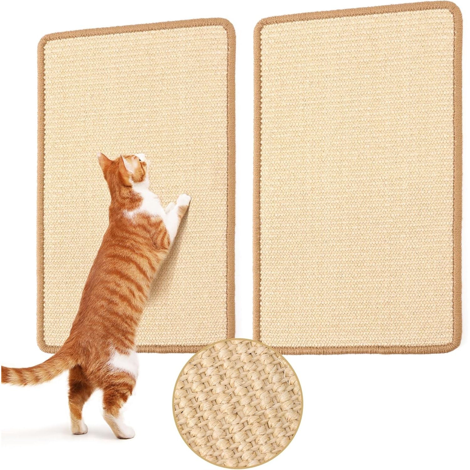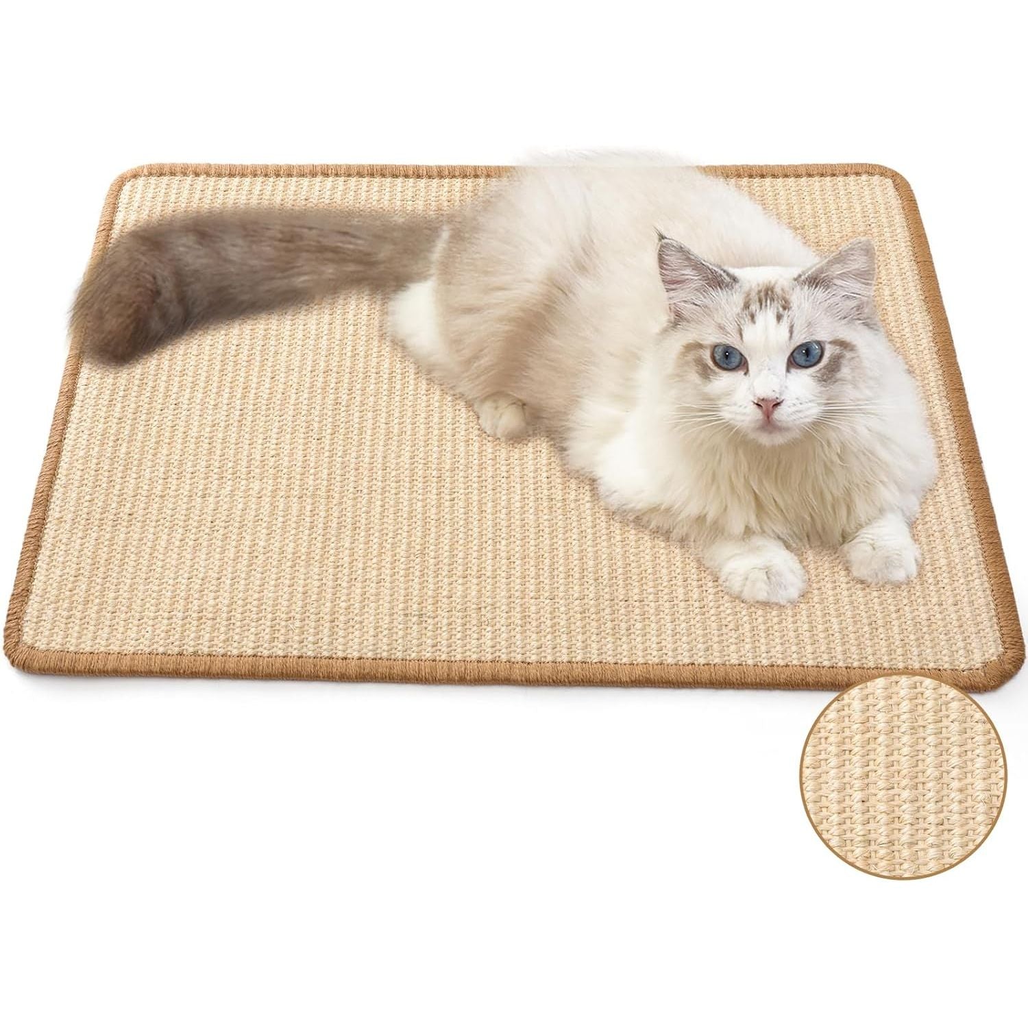 - FUKUMARU Cat Scratcher Mat, 23.6 X 15.7 Inch Natural Sisal Cat Scratch Mats, Horizontal Cat Floor Scratching Pad Rug with Sticky Tapes, Protect Couch and Carpets