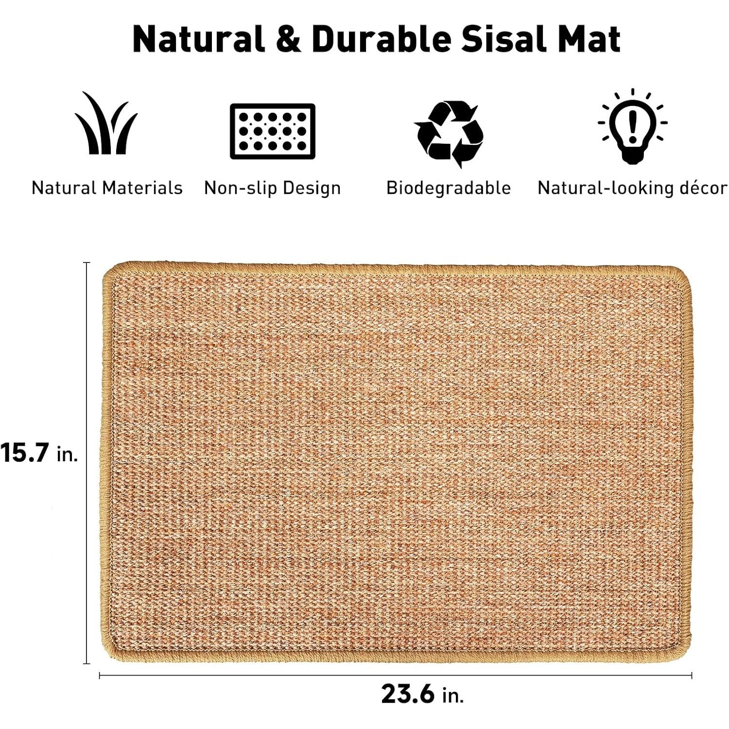 - Safe & Non-toxic - The pet natural sisal cat scratching mat, for one, is environmentally and cat-friendly. It has not been treated with any harsh oils, chemicals, or other substances which may harm your cat or the environment around it. Product Size: 23.6 X 15.7 Inch.