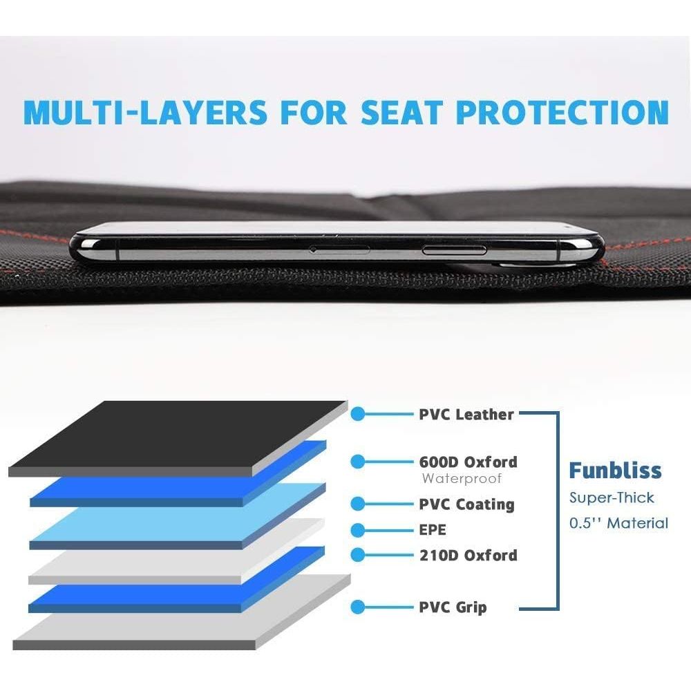 - Waterproof&easy to clean: The Funbliss car seat seat protector is made with waterproof Oxford fabric and thick foam padding, it will prevent water and other liquids from destroying your car interior, simply wipe off the dirt with a damp cloth. It’s also a perfect seat cover for your pets.