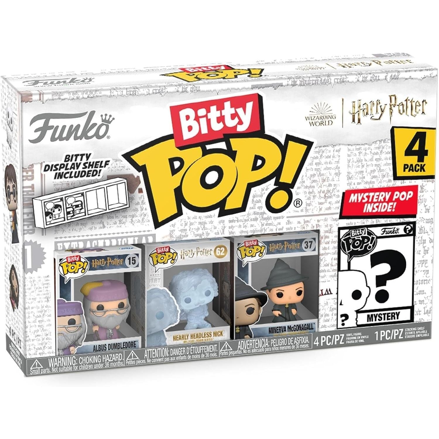 Diminuendo! Your favorite Harry Potter Pops! have been shrunk into Bitty Pops! Expand your Wizarding World collection with this assortment of Bitty Pop! figures featuring your most beloved Harry Potter characters! This 4-pack includes Bitty Pop! Hermione Granger, Bitty Pop! Rubeus Hagrid, Bitty Pop! Ron Weasley, and a mystery Bitty Pop! figure. The possible mystery Bitty Pops! are Hyper Rare (1/6) Harry Potter (Quidditch), Hyper Rare (1/6) Hedwig, Rare (1/3) Fawkes, and Rare (1/3) Severus Snape. Bitty Pops! are packaged in hard acrylic cases with detachable bottom lids. Detachable bottom lids double as acrylic bases, to which the Bitty Pop! figures are adhered. Vinyl figures are approximately 0.9-inches tall. Four figures per single package purchase. Warning: Choking Hazard. Collectibles are small. Not for children under the age of 3 years old. Item selection is random, as each piece is in blind packaging. We cannot accept requests for specific items. You may receive duplicate figures.
