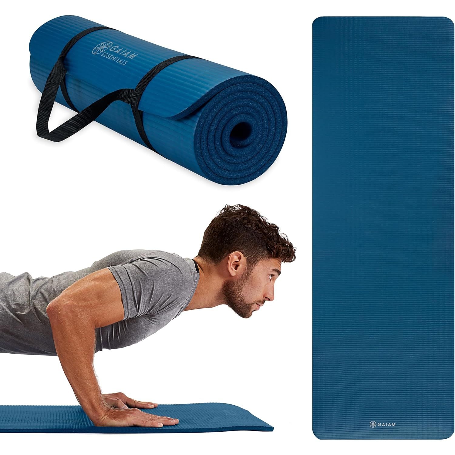 - Gaiam Essentials Thick 2/5" (10mm) and Thin 1/4" (6mm) Yoga & Pilates, Fitness & Exercise Mat with Easy-Cinch Carrier Strap