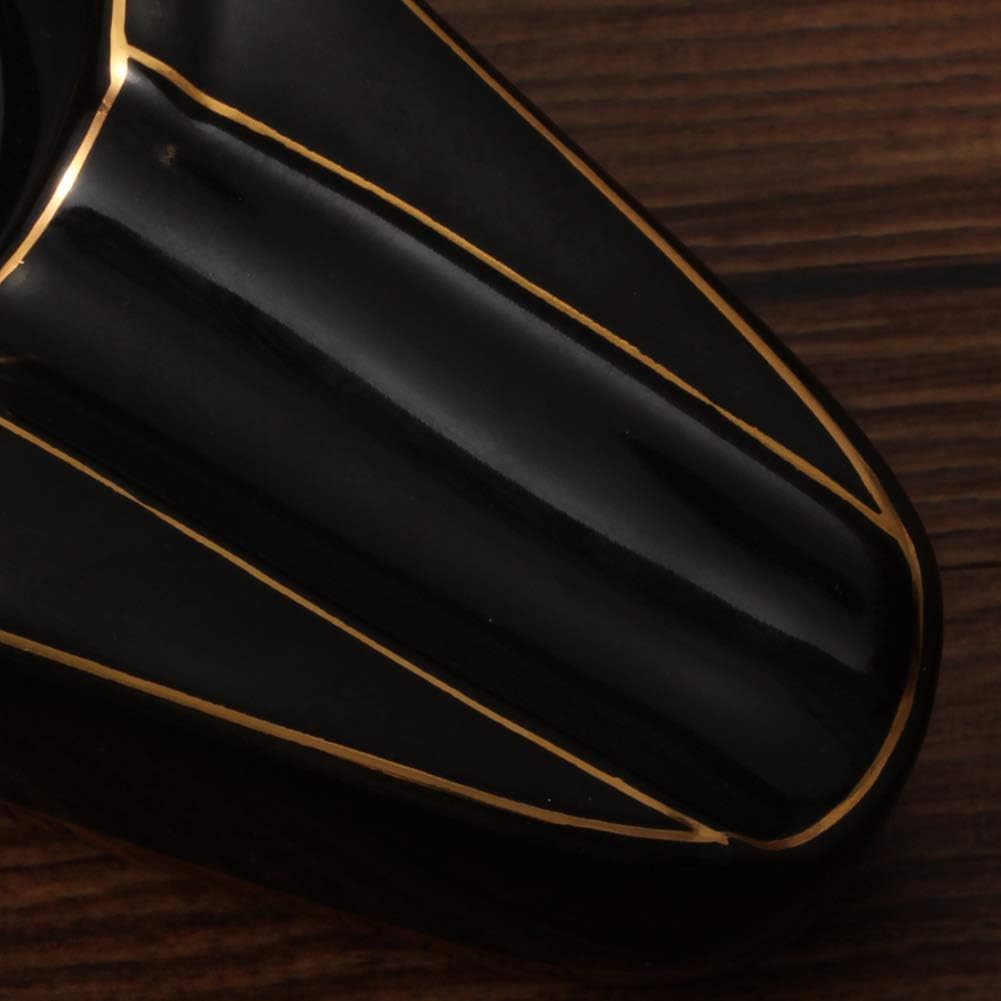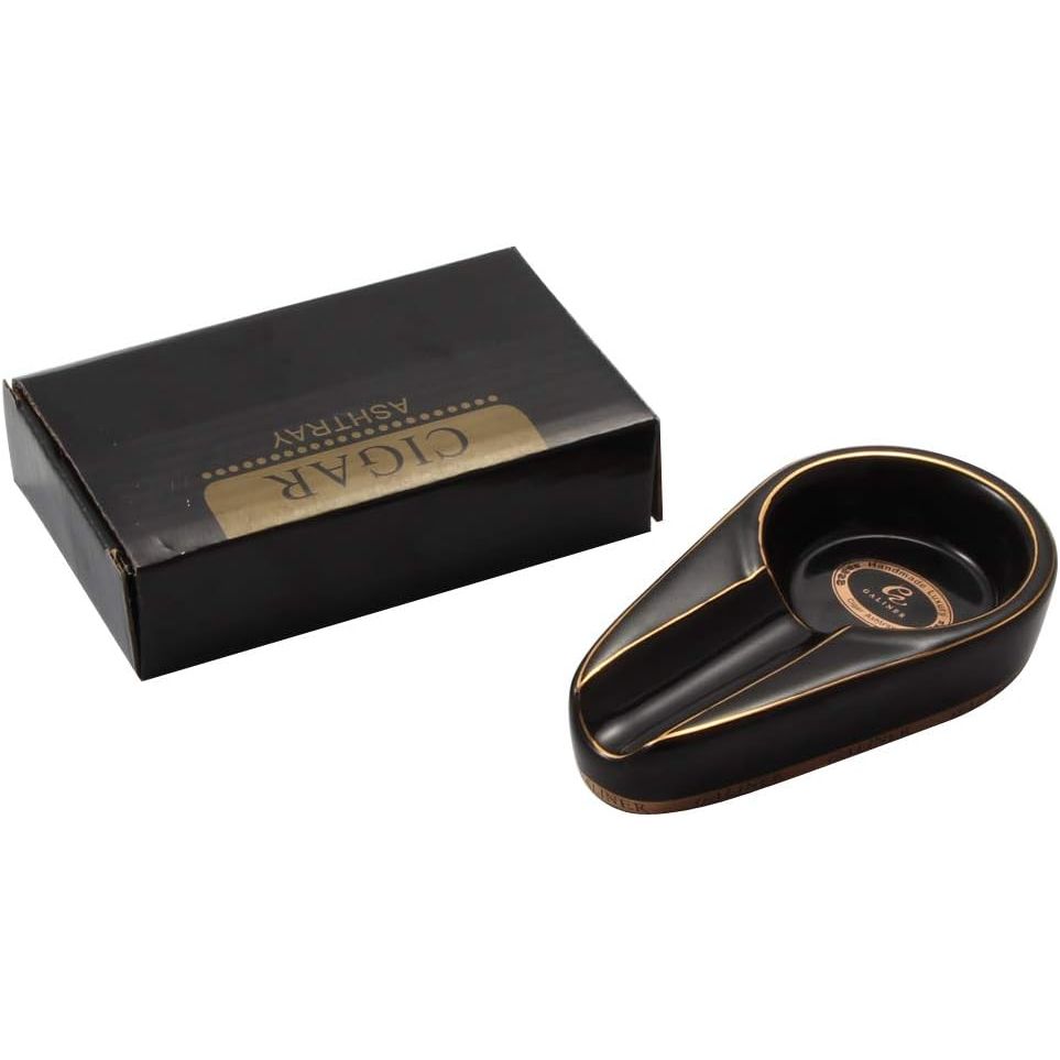 - Galiner Cigar Ashtray Travel Ceramic Ashtray For Cigars Outdoor Cigar Ash Tray Accessoires(Black With Golden line)
