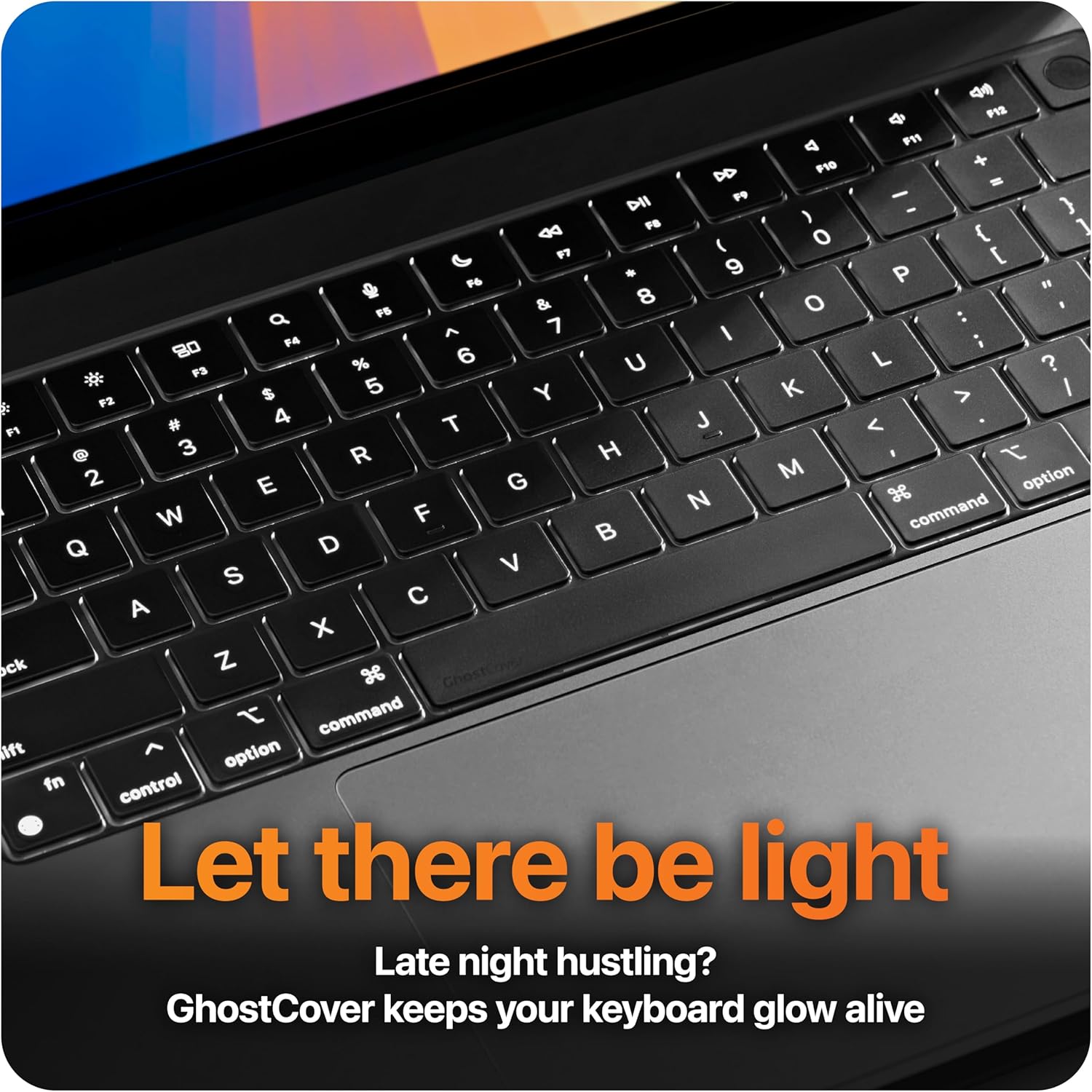 - GhostCover Original Premium Ultra Thin Keyboard Cover Protector, Compatible with 2025 2024 2023 2022 2021 M4/M3/M2/M1 Pro/Max MacBook Pro 14/16, M4/M3/M2 MacBook Air 13/15, US ANSI Layout, Clear