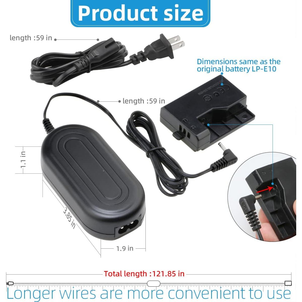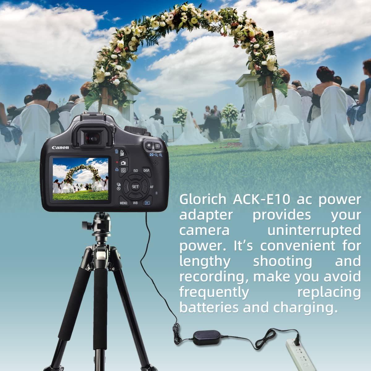 - Glorich ACK-E10 AC Power Adapter DR-E10 DC Coupler LP-E10 Dummy Battery Power Supply Kit for Cameras Canon EOS 1100D 1200D 1300D 1500D 2000D Rebel T3 T5 T6 T7 Kiss X50 X70 X80 X90