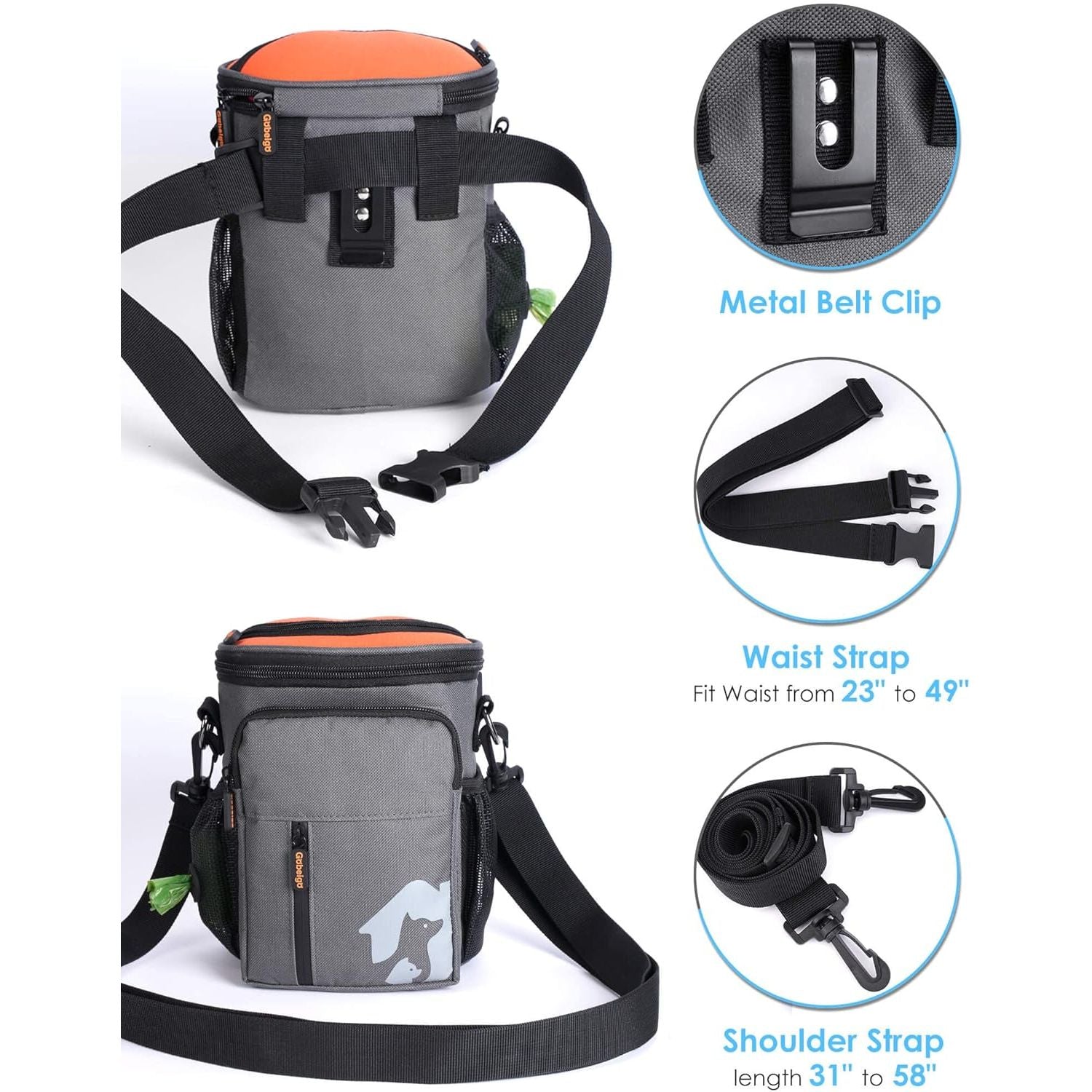 - Gobeigo【8 Cup Dog Treat Pouch【3 Ways to Wear 】 Treat Bag for Training & Walking, Built-in Poop Bag Dispenser, Large Phone Friendly (Gray & Orange)
