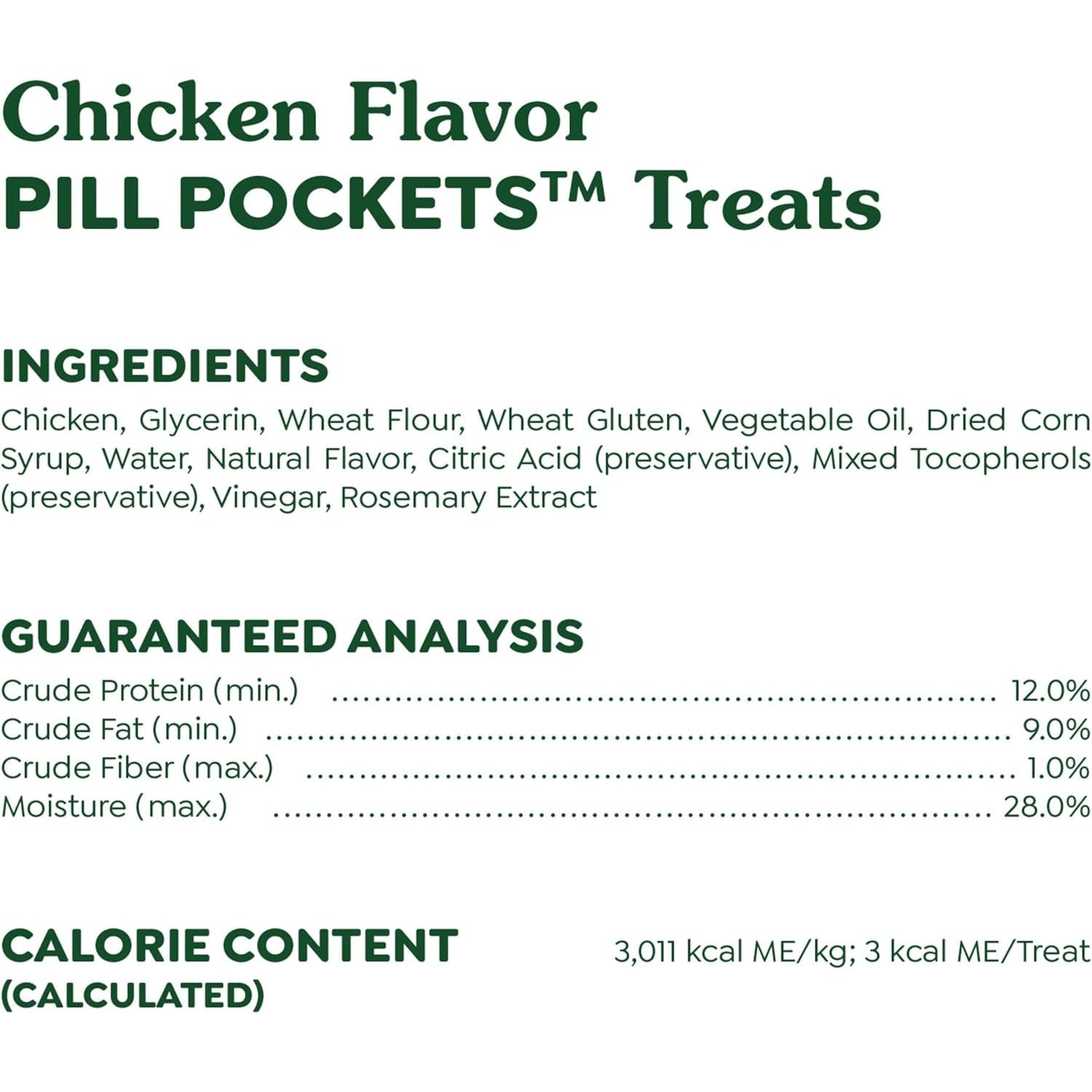 Take the stress out of giving your cat their medicine. Feline Greenies Pill Pockets Treats for Cats easily hide most tablet-sized and capsule-sized pills in a great-tasting meaty treat that’s made with natural ingredients plus minerals and trace nutrients. These soft cat treats are the #1 vet recommended choice for giving pills* and feature a delicious chicken flavor that helps disguise the taste of the medicine. It's the hassle-free way to give your cat medicine... just place their medicine inside the pocket, pinch the pocket closed to secure the pill or capsule, and share with your cat. Just like that, the treat (and medicine) disappears. When it comes to taking meds, your cat is smart. But you're smarter... because you've got Feline Greenies Pill Pockets Cat Treats. * Based on a survey of U.S. veterinarians