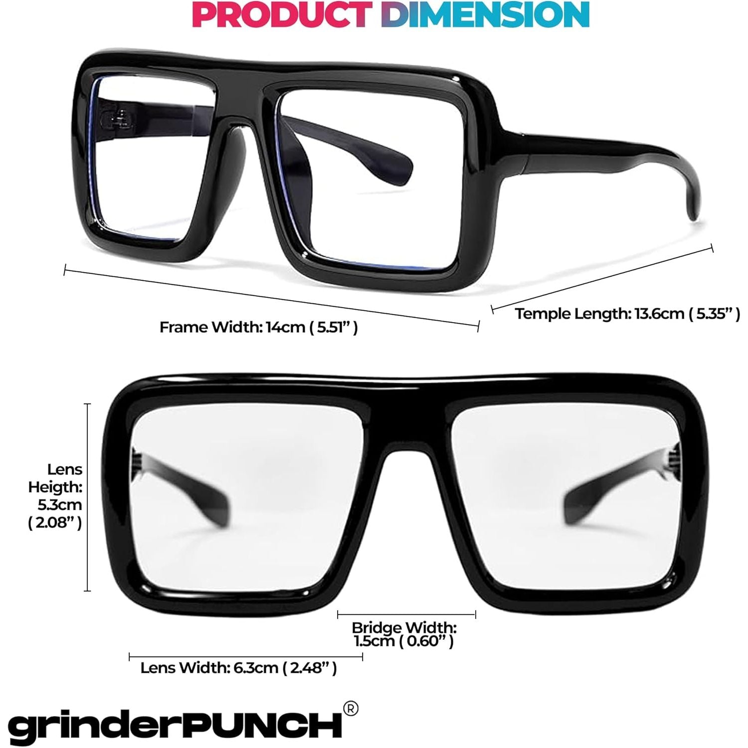 grinderPUNCH Thick Square Frame Clear Lens Glasses Eyeglasses Super Oversized Fashion and Costume