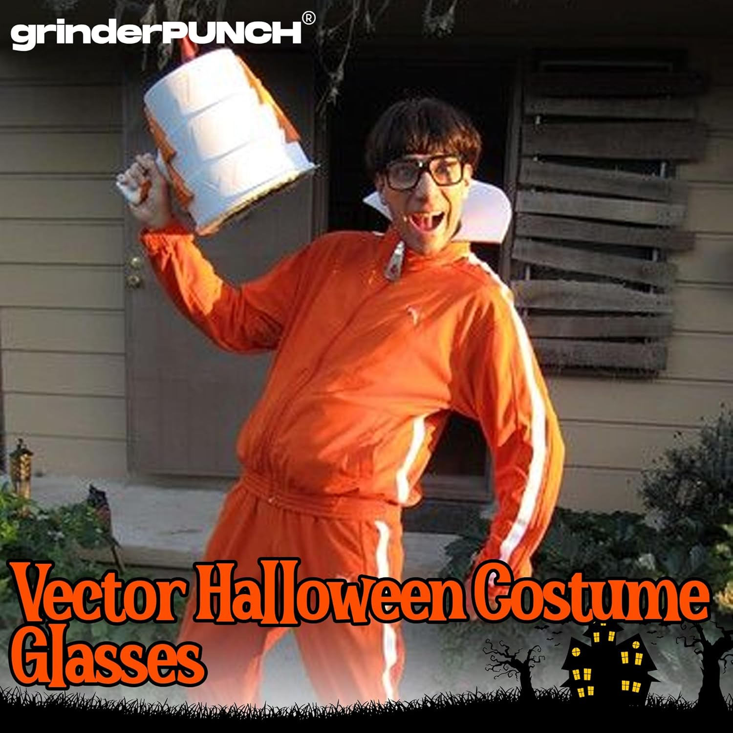 - grinderPUNCH Thick Square Frame Clear Lens Glasses Eyeglasses Super Oversized Fashion and Costume