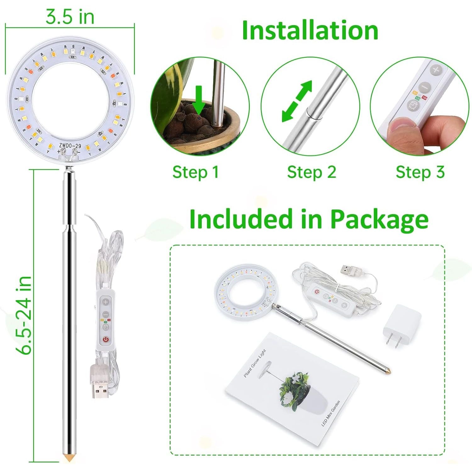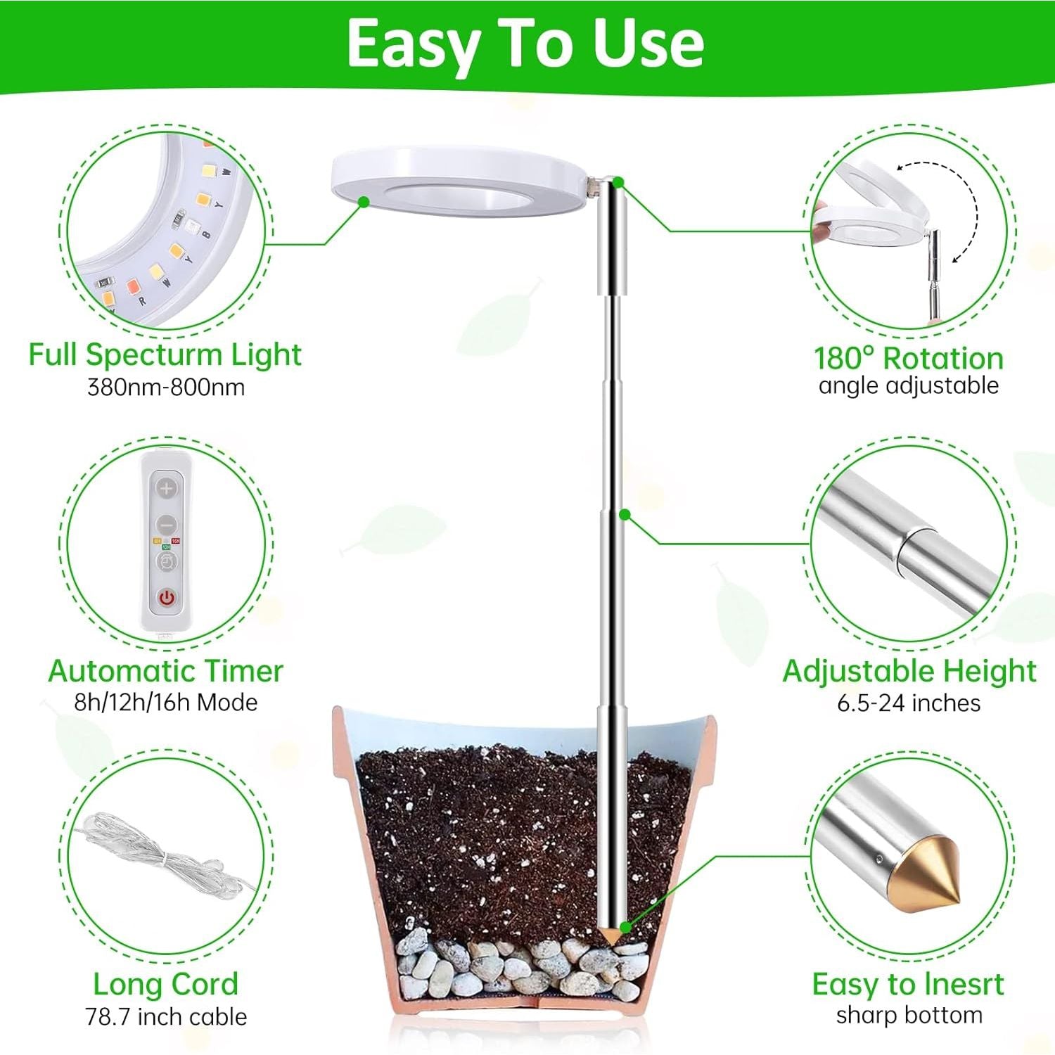 - Grow Lights for Indoor Plants, ROMSTO LED Full Spectrum Plant Light for Indoor Plants, Height Adjustable Grow Light with 10 Dimmable Brightness, 8/12/16H On/Off Timer, Ideal for Small Plants,1 Pack
